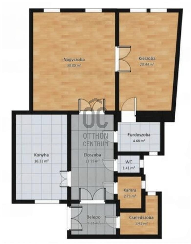 -3 nagy szoba plusz 1 félszoba