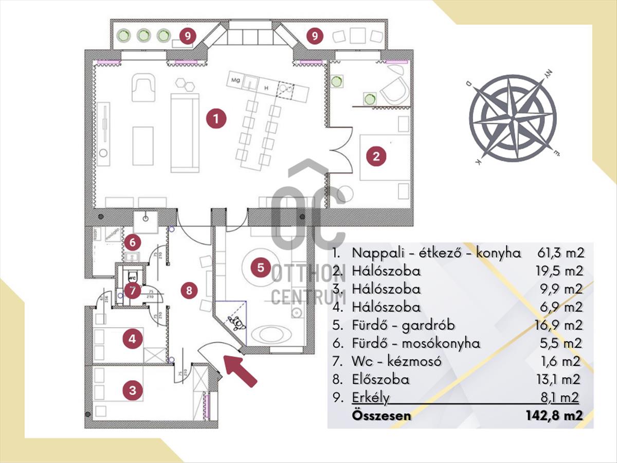- 1. emelet, 138 m2 lakótér + 8 m2 erkélyes, kifejezetten igényes ingatlan