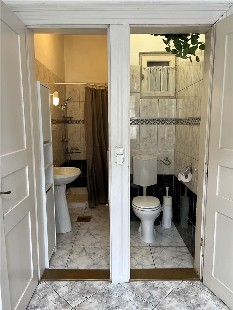 A lakás egy klasszikus, hangulatos bérház 2. emeletén található (lift nincs), melynek különlegessége a zöld, fás belső udvar, ami nyugodt atmoszférát biztosít a belváros közepén.