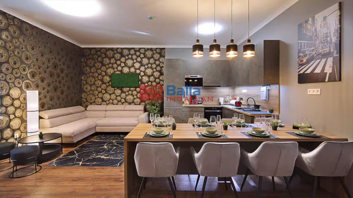 A lakás amerikai konyhás nappalival, valamint öt különálló, nagy méretű hálószobával rendelkezik, amelyek mindegyike kényelmes, king-size ággyal, és gardróbszekrényekkel van berendezve. a tágas nappaliban modern ülőgarnitúra és Smart Tv biztosítja a kényelmet. Minden helyiségben légkondicionáló gondoskodik a megfelelő hőmérsékletről.