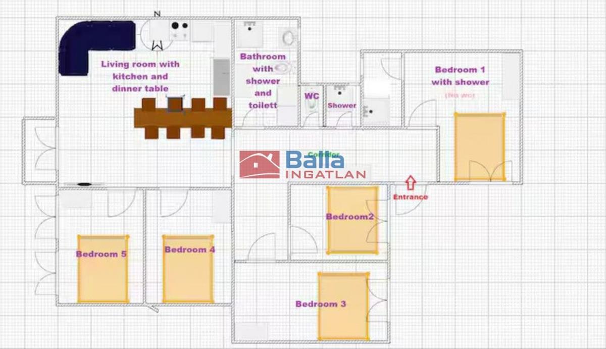A lakás amerikai konyhás nappalival, valamint öt különálló, nagy méretű hálószobával rendelkezik, amelyek mindegyike kényelmes, king-size ággyal, és gardróbszekrényekkel van berendezve. a tágas nappaliban modern ülőgarnitúra és Smart Tv biztosítja a kényelmet. Minden helyiségben légkondicionáló gondoskodik a megfelelő hőmérsékletről.