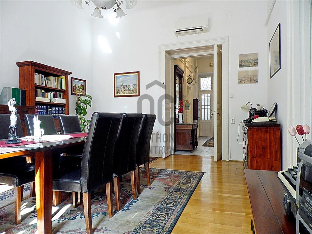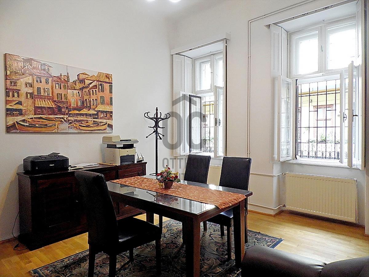 Legyen bérlője ennek a VI. kerület előkelő, patinás részén, az egész Belvároshoz, a Körúthoz, a Városligethez is közel eső, de mégis egy csendes, nyugodt, zöld parkos-ligetes környezet közvetlen szomszédságában lévő, a Felsőerdősor utca és a Városligeti fasor sarkán elhelyezkedő, a 19. Századi Wurm-villa kertjének helyére 1892-ben épült, neoreneszánsz stílusjegyeket hordozó, számos művésznek jelenleg is otthont adó, háromemeletes, impozáns lépcsőházas-, körfolyósos-, belső kertes lakóház i. emeletén található, a napokban frissen tisztasági festett(! ), Modern gázcirkókazánnal fűtött és vadonatúj Gree márkájú légkondicionáló berendezéssel hűtött, praktikus belső elrendezésű, - a tulajdoni lap szerint 79 m2-es, de a valóságban 82 m2-es alapterületén - 3 darab külön helyiségben lévő, nagy méretű (akár 6-8 fős tárgyalások kényelmes lebonyolítására is kiválóan alkalmas) szobákból (iroda helyiségekből), egy káddal felszerelt fürdőszobából, egy külön wc helységből, - az irodai munkavégzést bőven kiszolgáló - felszerelt (bútorozott és gépesített) teakonyhából és az ezen helyiségeket összekötő - az ügyfeleket kényelmesen fogadni tudó, akár recepcióként is használható - tágas méretű előszobás közlekedőből álló, nagy üvegfelületű utcai és udvari panorámás ablakain át közvetlen napsütötte / fényárban úszó, összes belterében a legapróbb részletekig mindenhol visszaköszönő, nagypolgári enteriőrt magában hordozó, az ehhez tökéletesen passzoló, nagyon elegáns és visszafogott Toscana stílusú lakberendezettségével különleges hangulatot és XIX. Századi életérzést árasztó, de műszaki és (iroda)technikai felszereltségével és megoldásaival természetesen, teljes körű XXI. Századi munkakörnyezetet biztosító irodalakásnak!