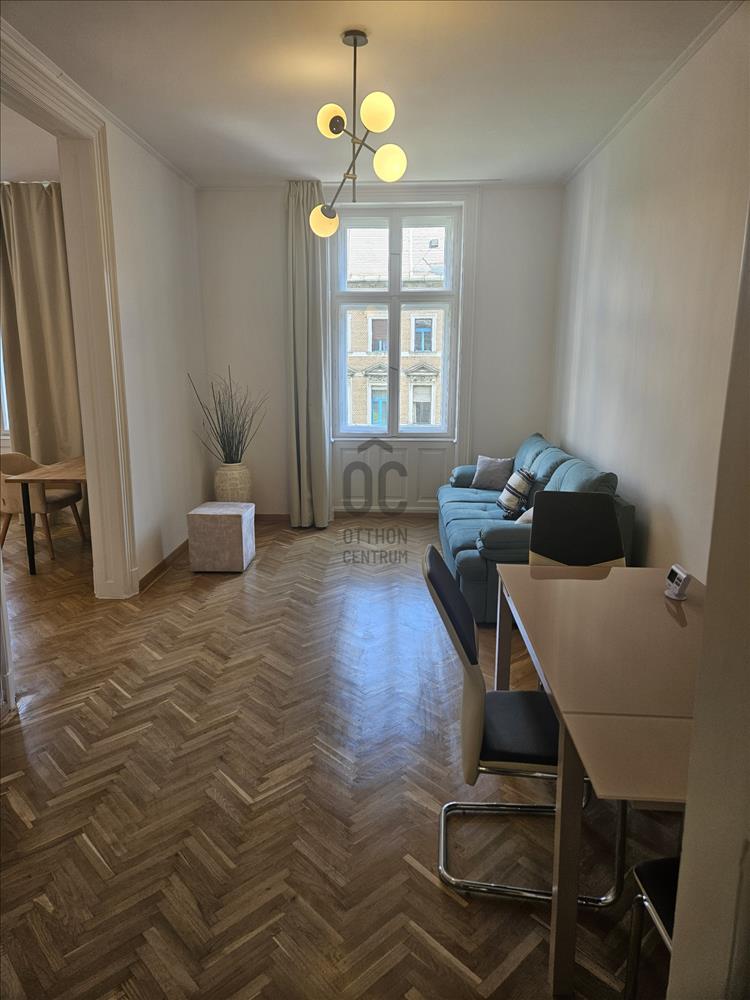 Kiadó a VI. kerület szívében, a Teréz körúton, a Nyugati pályaudvar közvetlen közelében egy 65 m²-es, 2 szobás, frissen és magas minőségben felújított, bútorozott társasházi lakás.