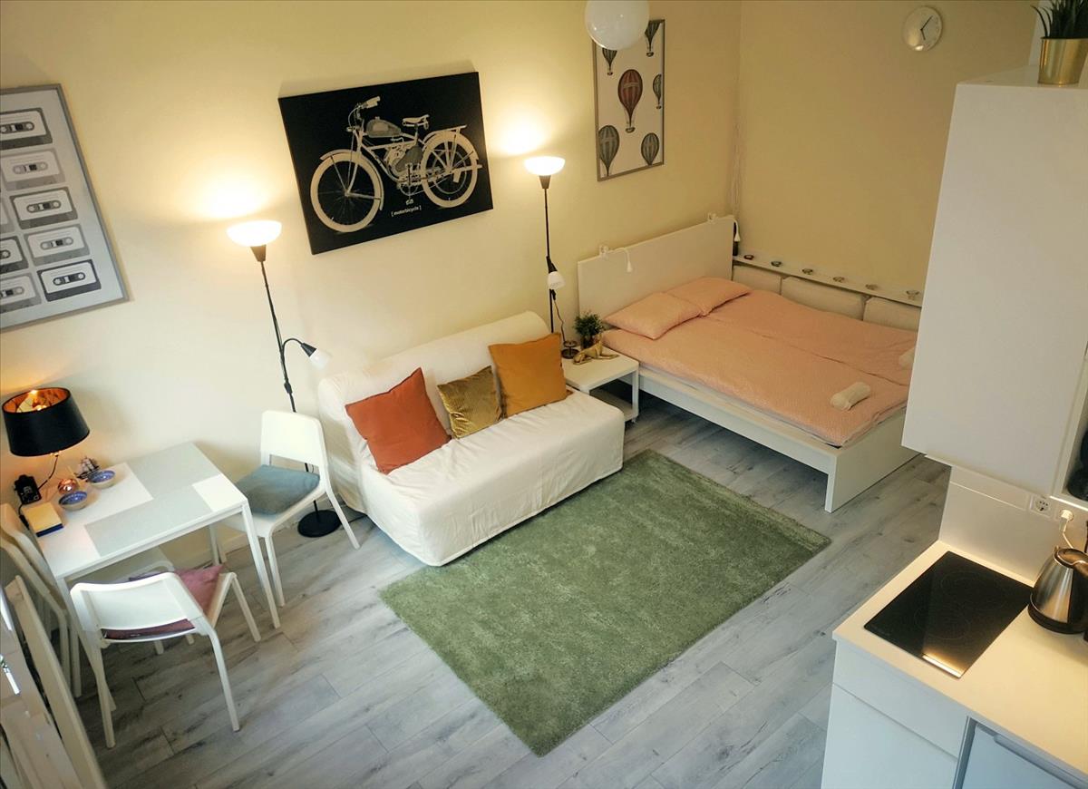 FULLY equipped kitchen, living and sleeping area (led tv, refrigerator, washing machine, microwave, vacuum cleaner, toaster, kettle), new furniture, comfortable double bed and pull-out sofa, with plenty of storage space and wardrobes.