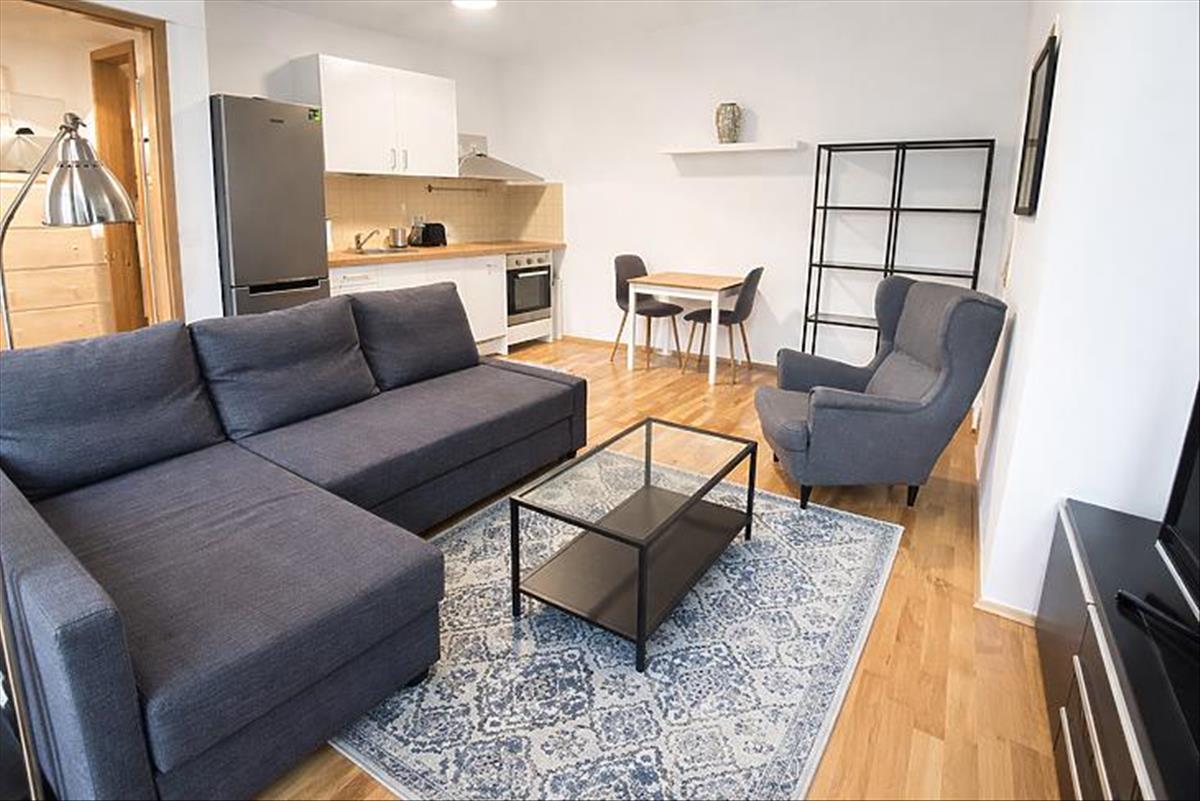 Budapest VI. kerületében, a Vörösmarty utcában, új építésű, modern, portaszolgálatos társasházban kiadó egy 41 m²-es, felújított, világos lakás.