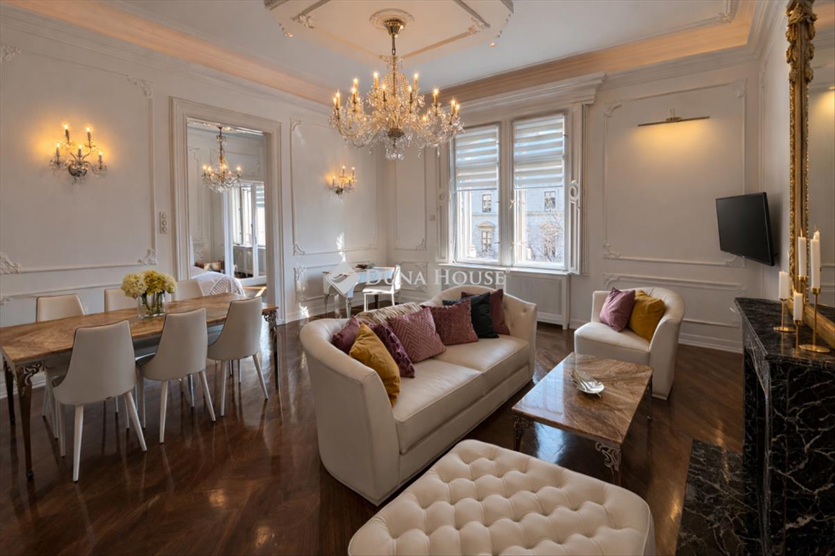 Exkluzív 114 m²-ES luxuslakás kiadó az andrássy úton a callas házban 3 háló, az operaház MELLETT(English below)Budapest egyik legexkluzívabb sugárútján, az Andrássy úton, a híres Callas Házban kínálunk bérlésre egy teljes körűen felújított, 114 m²-es luxuslakást. Az Operaház közvetlen közelében található, három hálószobás ingatlan a nagypolgári eleganciát modern design elemekkel ötvözi. Közel 4 méteres belmagasság, restaurált halszálka parketta és háttérvilágított onyx kő burkolat teremti meg a különleges atmoszférát. a környék Budapest egyik legexkluzívabb része. Az Andrássy út mentén egymást követik a világ legismertebb divatházai és luxusmárkái: Louis Vuitton, Gucci, Omega és számos prémium butik, elegáns galéria és fine dining étterem található a közvetlen közelben. a sugárút hangulata egyszerre pezsgő és kifinomult igazi nagyvárosi életérzés. Az ingatlan a Callas Ház patinás épületében található, amely az Operaház szomszédságában Budapest egyik legismertebb és legkülönlegesebb épülete. a reprezentatív lépcsőház, a klasszikus építészeti részletek és a lift kényelmes megközelítést biztosítanak. Belépve azonnal feltűnik a tér és a természetes fény. a közel négy méteres belmagasság, a restaurált halszálka parketta és a finoman kidolgozott stukkódíszítés különleges atmoszférát teremtenek. a tágas nappali és étkező a lakás központi tere, amely tökéletes helyszín egy nyugodt esti borozáshoz vagy elegáns vendégfogadáshoz a város szívében. a modern, egyedi tervezésű konyhai tér harmonikusan kapcsolódik a nappalihoz, így egyszerre praktikus és látványos. a magasfényű fehér bútorzat letisztult megjelenést biztosít, amelyet hangulatos világítás egészít ki. Az enteriőr egyik legkülönlegesebb eleme a háttérvilágított onyx kő burkolat, amely meleg fényével igazán exkluzív hangulatot teremt. a prémium minőségű beépített gépek sütő, mikrohullámú sütő, mosogatógép, főzőlap és mosógép a modern élet minden kényelmét biztosítják. Az ingatlan három különálló hálószobával rendelkezik, amelyek kényelmes privát teret kínálnak. a két fürdőszoba elegáns megjelenését szintén különleges anyaghasználat emeli ki, köztük a háttérvilágított onyx kő felület, amely luxus hangulatot ad a térnek. a lokáció nemcsak elegáns, hanem rendkívül praktikus is. Az Operaház, az Oktogon és a Deák Ferenc tér közelségének köszönhetően az M1-es metró, villamosok és több buszjárat néhány perc sétával elérhető. Bérleti feltételekBérleti díj: 2 500 euro / hó + rezsi egyedi mérés alapjánBeköltözéskor fizetendő:1 havi bérleti díj + 2 havi kaució + 1 havi közös költségKözös költség díja: 27. 000 Huf/ HónapA bérleti szerződés közjegyzői okiratba foglalása szükséges. Minimum bérleti idő: 12 hónapEz az ingatlan ideális választás azok számára, akik Budapest egyik legexkluzívabb környezetében szeretnének élni, és értékelik a luxust, a történelmi hangulatot és a belvárosi élet minden előnyét. Amennyiben szeretné személyesen is megtapasztalni ezt az egyedülálló hangulatot, várom megtisztelő megkeresését. EXCLUSIVE 114 sqm luxury apartment for rent on andrássy avenue in the callas house 3 bedrooms, next to the OPERALocated on Budapests most prestigious avenue, Andrássy Avenue, this fully renovated 114 sqm luxury residence is situated in the iconic Callas House next to the Opera House. The three-bedroom property combines classic grand bourgeois architecture with modern design elements. Nearly four-meter ceiling height, restored herringbone parquet flooring and backlit onyx stone surfaces create a truly unique atmosphere. The area is one of the most exclusive locations in Budapest. Along Andrássy Avenue you will find the worlds most famous fashion houses and luxury brands such as Louis Vuitton, Gucci, Omega, as well as premium boutiques, elegant galleries and fine dining restaurants. The atmosphere of the avenue is both vibrant and sophisticated a true metropolitan lifestyle. The property is located in the prestigious Callas House, one of the most iconic buildings next to the Opera House. The representative staircase, classical architectural details and the elevator provide convenient access. Upon entering, the sense of space and natural light is immediately noticeable. The nearly four-meter ceiling height, restored herringbone parquet flooring and finely crafted stucco decorations create a unique atmosphere. The spacious living and dining area forms the central part of the interior, perfect for relaxing evenings or elegant gatherings in the heart of the city. The modern, custom-designed kitchen area connects seamlessly with the living space, creating a layout that is both practical and visually elegant. High-gloss white cabinetry provides a clean and sophisticated look, enhanced by subtle ambient lighting. One of the most striking design elements is the backlit onyx stone surface, which adds warmth and a luxurious character to the interior. Premium built-in appliances including an oven, microwave, dishwasher, cooktop and washing machine ensure maximum comfort for everyday living. The apartment features three separate bedrooms offering comfortable private spaces. The two bathrooms are enhanced by exclusive materials, including a backlit onyx stone surface that further emphas the luxurious design. The location is not only elegant but also extremely practical. The Opera House, Oktogon and Deák Ferenc Square are all within a few minutes walk, providing easy access to the m1 metro line, trams and several bus routes. Rental conditionsRental fee: 2 500 euro / month + utilities based on individual consumptionUpon signing the contract:1 month rent + 2 months deposit + 1 month common costCommon cost fee: 27, 000 HUF/MonthThe 