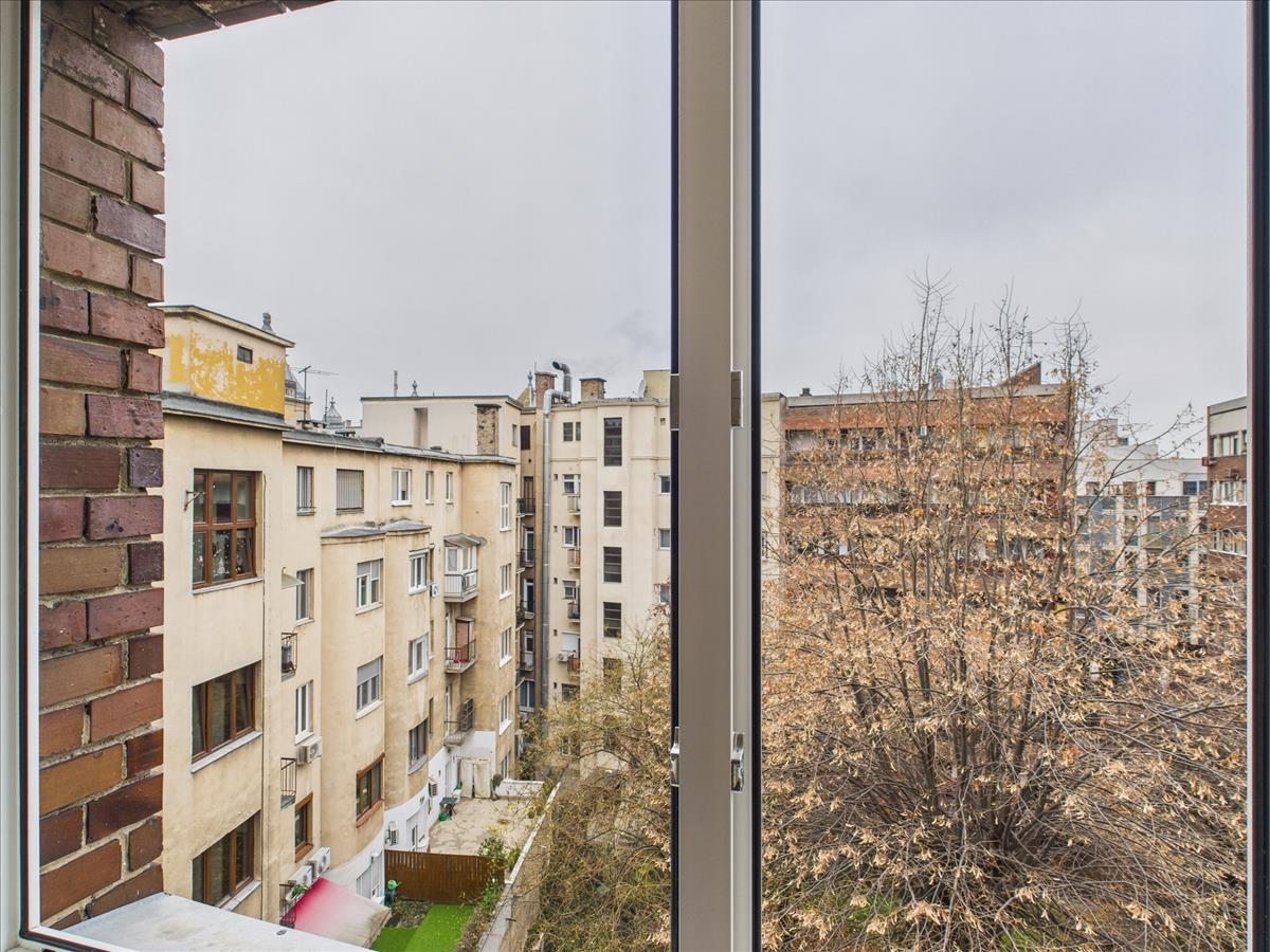 Kiadó egy 51 m²-es, bútorozott, jó elosztású lakás Budapest egyik legfrekventáltabb pontján, gyakorlatilag a Madách tér közvetlen közelében, egy rendezett, liftes társasház 6. emeletén. Az ingatlan udvari tájolású, így a belvárosi elhelyezkedés ellenére kimondottan csendes és nyugodt.