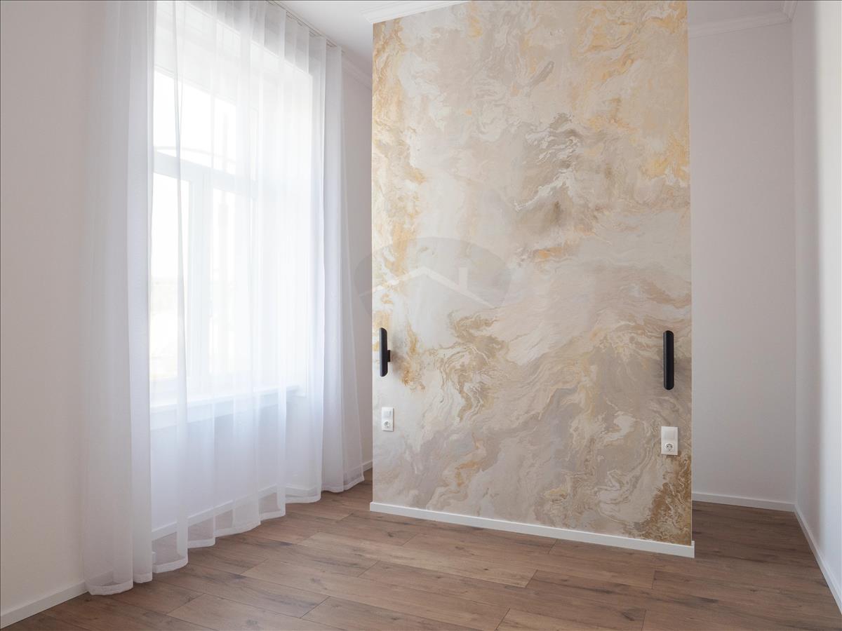 Ez a 46, 6 m²-es, kifinomult arányokkal megtervezett otthon a klasszikus belmagasság eleganciáját ötvözi a mai, letisztult belsőépítészeti megoldásokkal. a térszervezés tudatos: nappali + két külön nyíló hálószoba, valamint egy külön gardróbszoba – ami ebben a méretkategóriában ritka és valódi értéknövelő tényező.