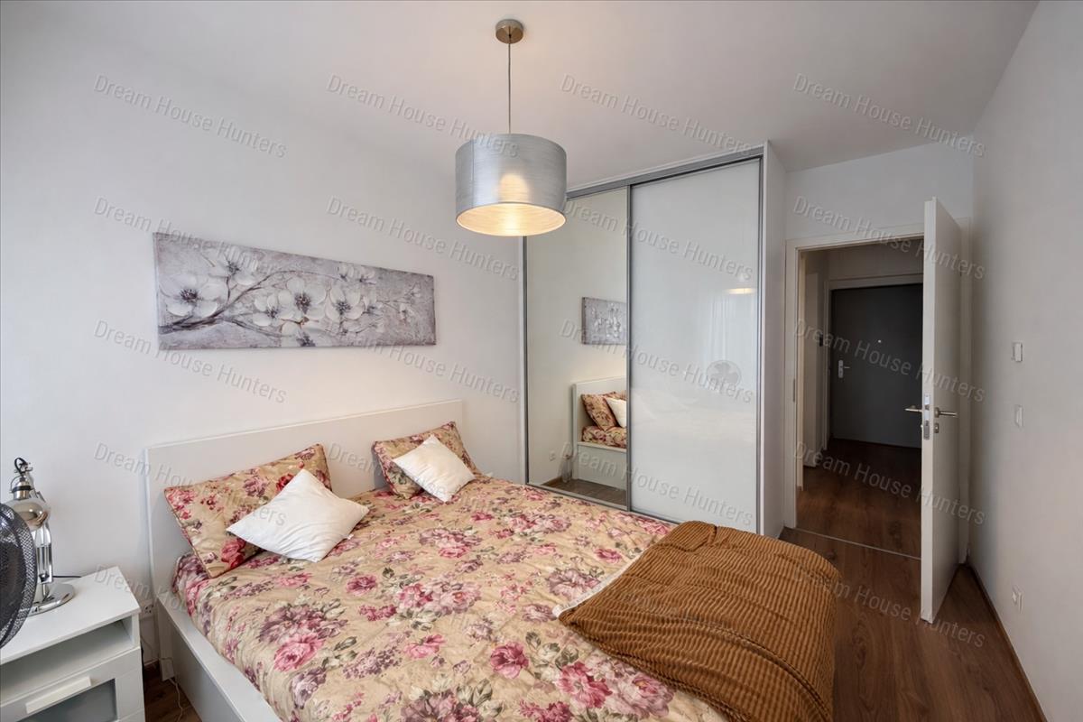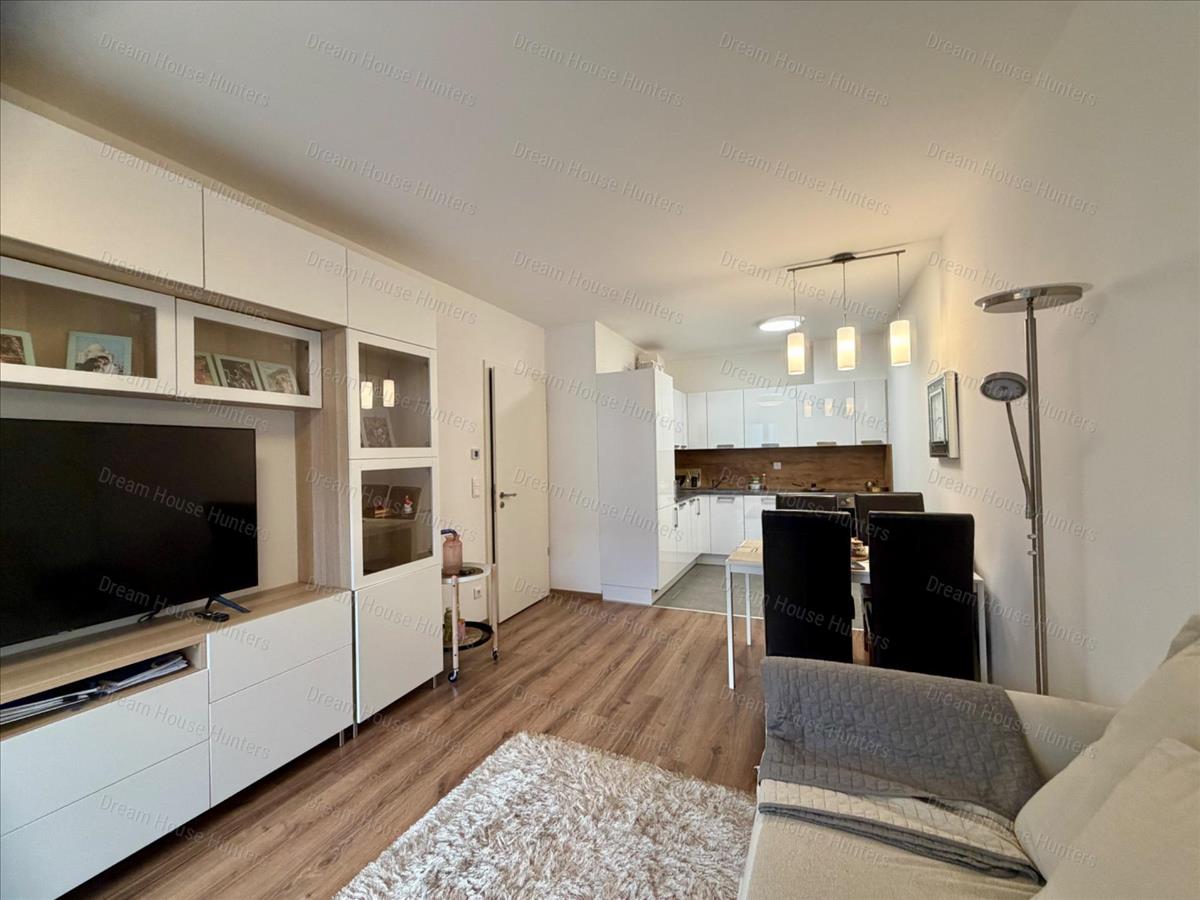 A Dream House Ingatlaniroda a VII. kerületben, a Gozsdu udvar közelében kínál bérletre egy újszerű liftes épület 5. emeletén egy 45 m2-es alapterületű, 2 szobás lakást. Teljesen berendezett, gépesített, 1-2 fő számára ideális választás lehet. Amerikai konyhás nappalijából nyílik a 4 m2-es erkélyre, mely a belső udvarra néz. Hálószobájában egy beépített gardróbszekrény van a francia ágy mellé. Kádas fürdőszobájában található a mosó-szárító gép, előszobájában pedig beépített szekrények szolgálják az itt élők kényelmét. Konyhája hűtővel, fagyasztóval, elektromos főzőlappal, sütővel és mikróval, elszívóval felszerelt. Kényelemért a szabályozható padló és mennyezeti hűtés-fűtés felel.