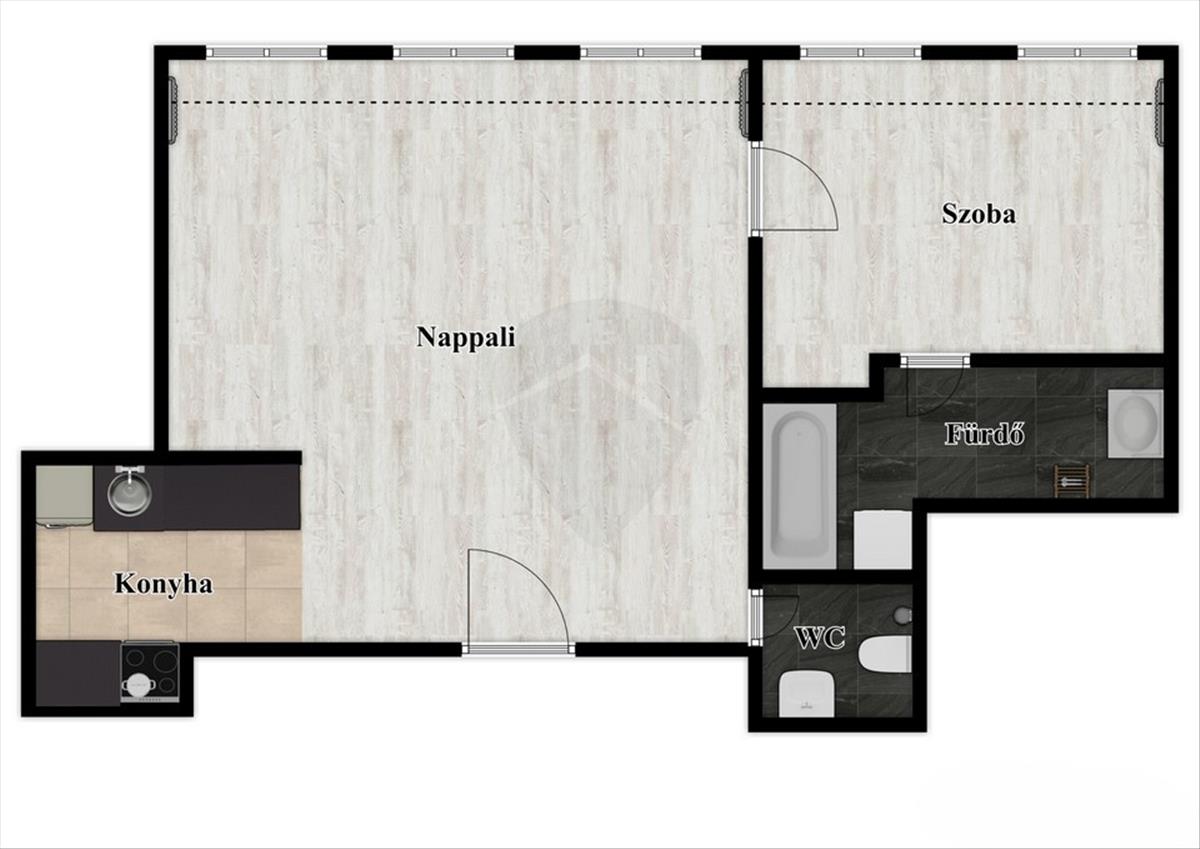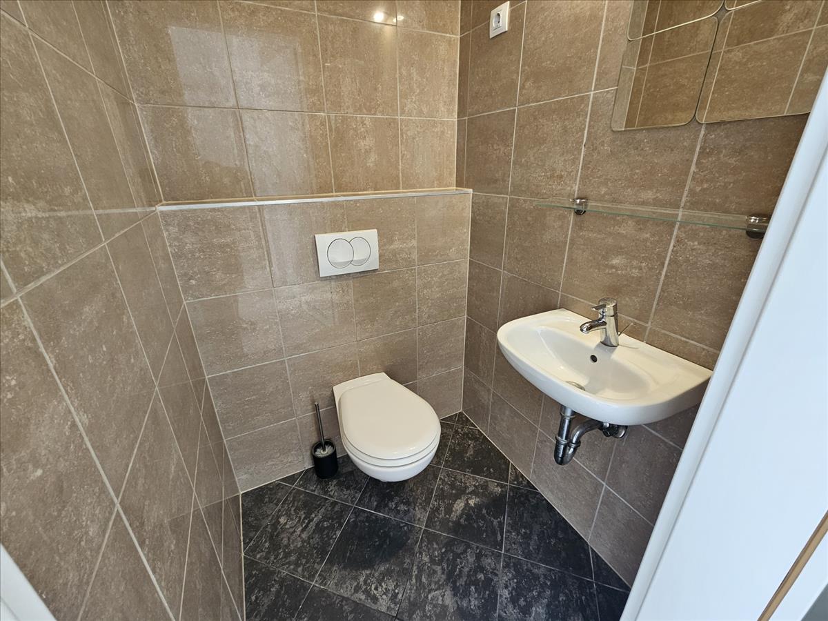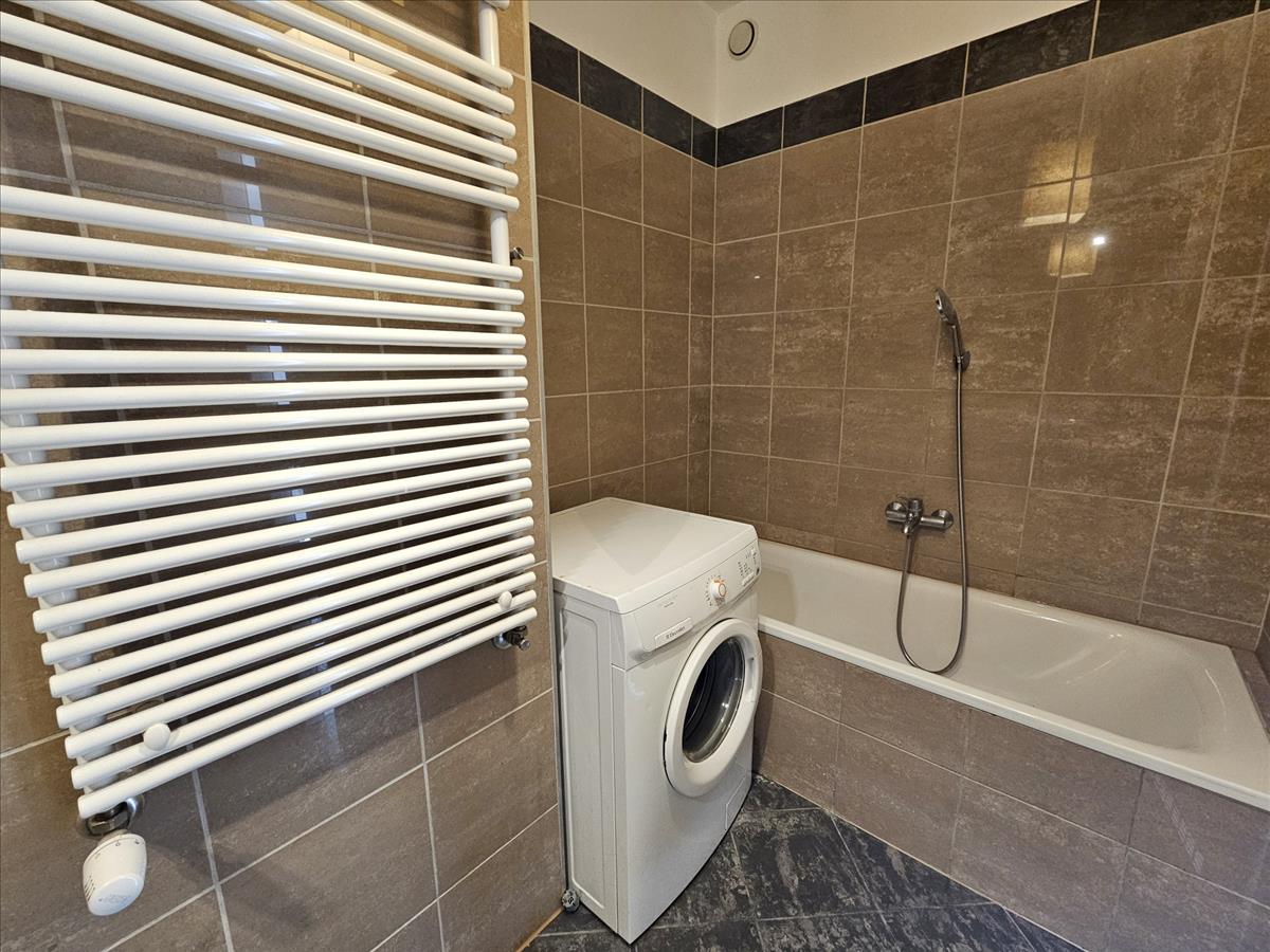 Kádas fürdőszoba, külön wc, teljesen gépesített konyhaa található a lakásban. a gépek a konyhabútorba vannak beépítve: mosogatógép, hűtő és mikró is rendelkezésre áll.