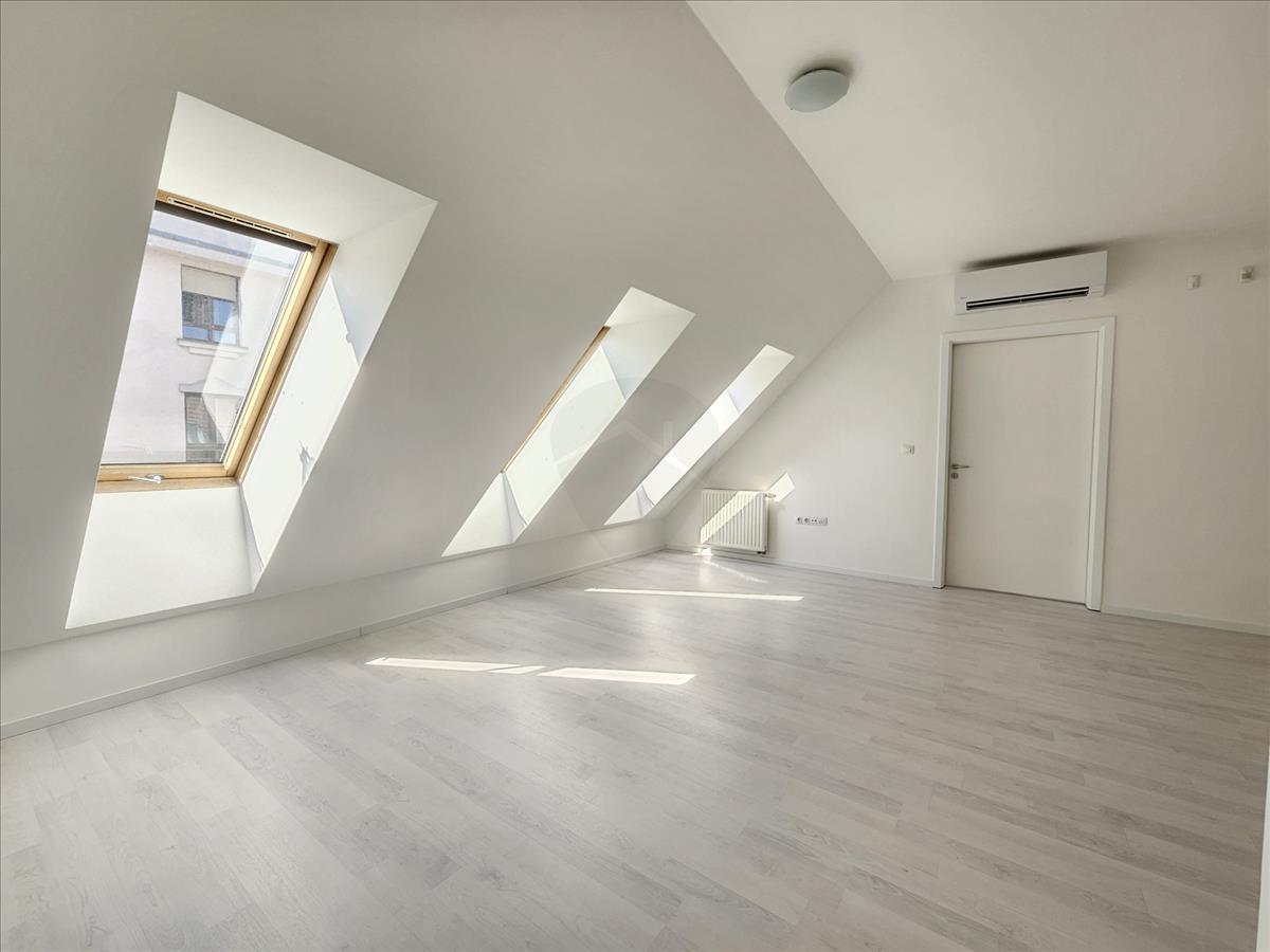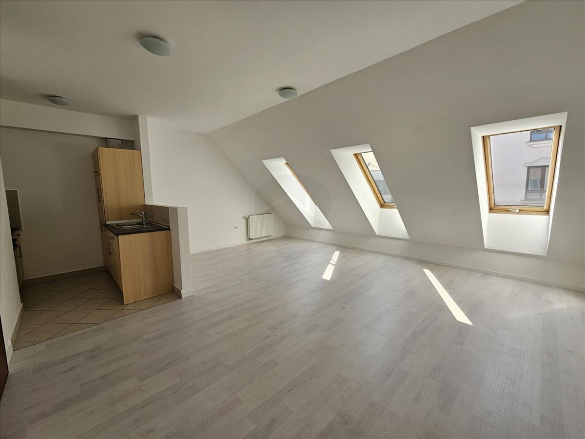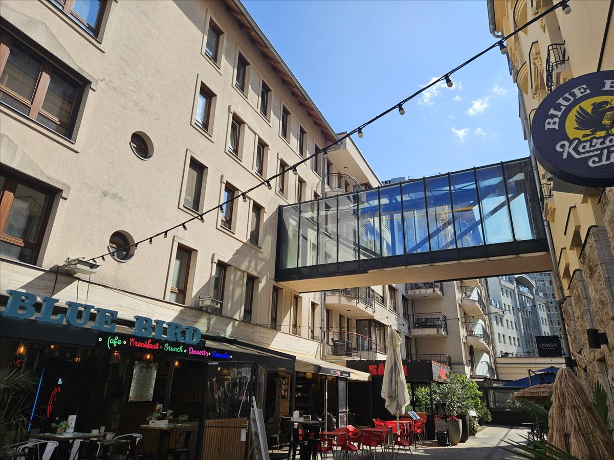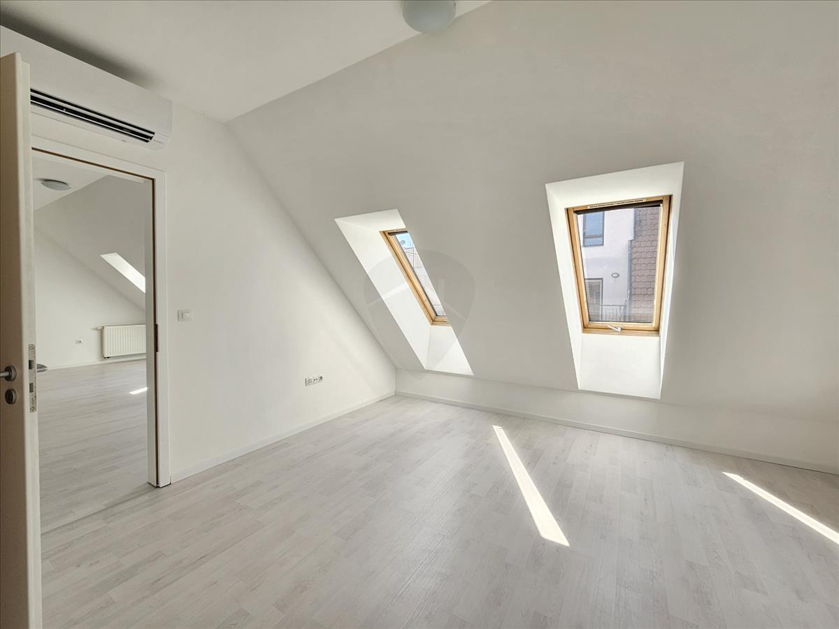 Hosszútávra kiadó ez a nappali plusz hálószobás tetőtéri klimatizált újszerű lakás kiváló állapotban a Holló utcában a gozsdu udvarban