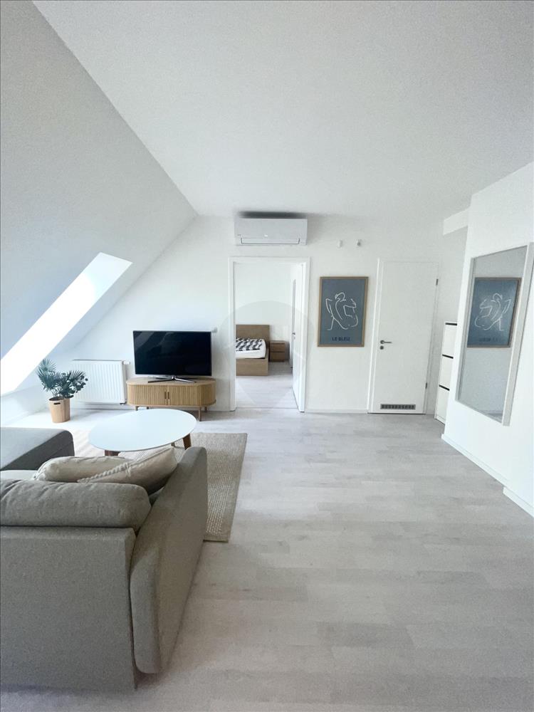 Hosszútávra kiadó ez a nappali plusz hálószobás tetőtéri KLIMA...