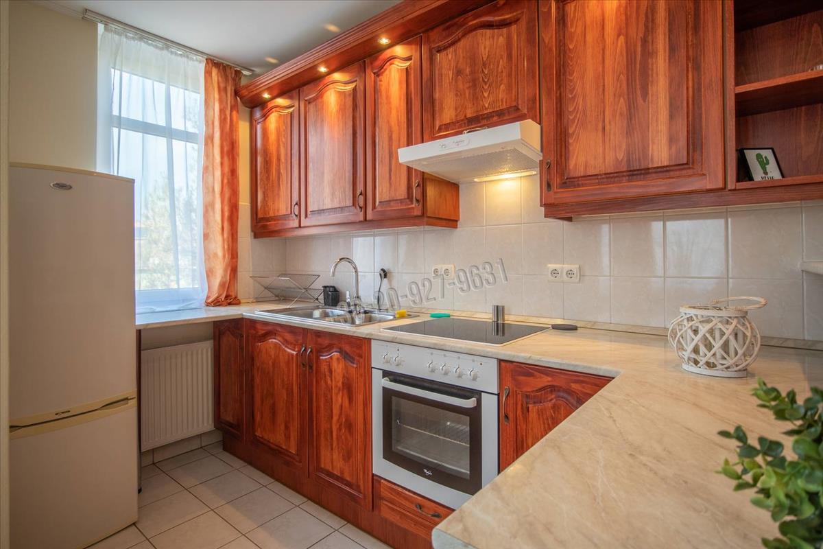 According to the pictures, it is in excellent condition waiting for its tenant. Fully furnished and equipped - can be moved immediately. The kitchen is equipped with an electric oven and ceramic hob, as well as a fridge and extractor hood. The bathroom has a bathtub and a washing machine is also there. The air conditioning installed in the living room ensures a pleasant temperature throughout the apartment.