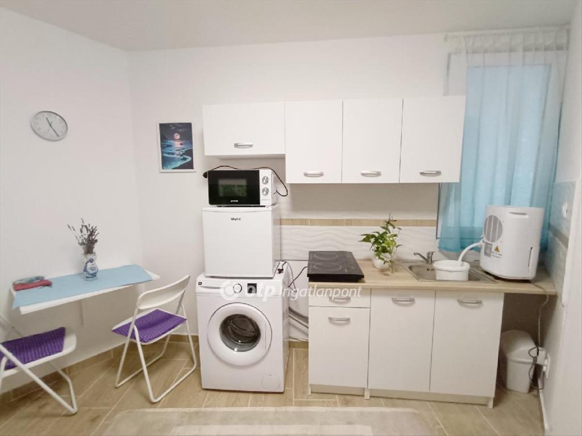 Modern, új berendezésekkel felszerelt: elektromos főzőlap, mikrohullámú sütő, hűtőszekrény és mosógép is rendelkezésre áll, így a bérlőnek csak költöznie kell.