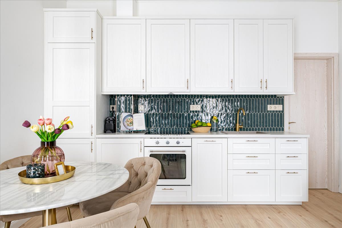 A keleti fekvésű amerikai konyhás nappaliban került kialakításra az étkező rész és a konyha is, az így létrejött közös tér mesés helyszíne a nyugodt kikapcsolódásnak, a baráti és családi beszélgetéseknek és az összejöveteleknek.