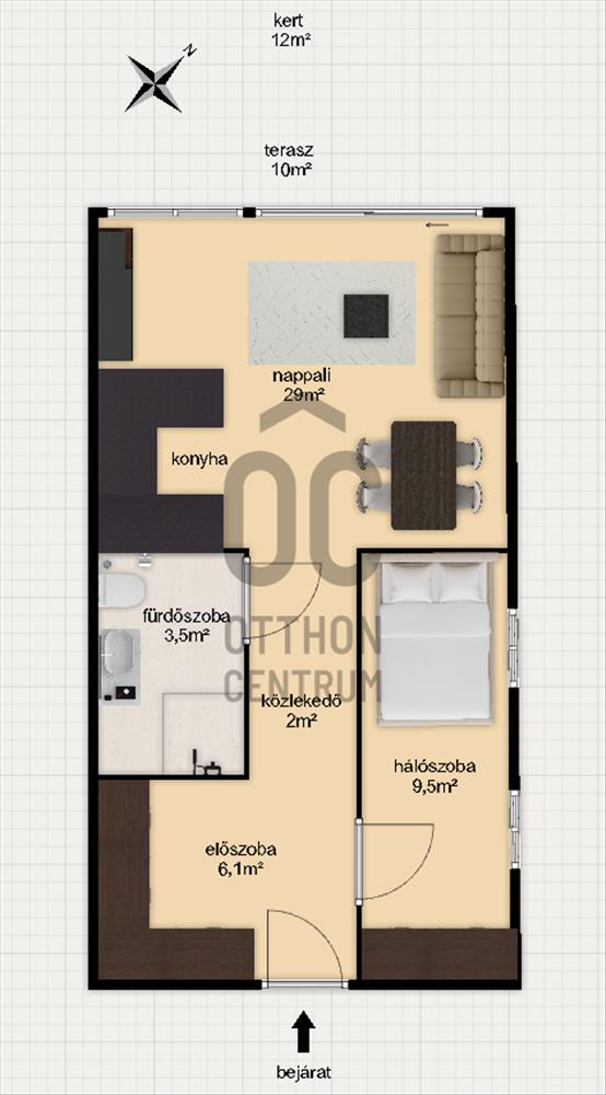 A lakáshoz saját kertkapcsolat tartozik, ahol nyugodt perceket tölthetünk el a szabadban. További előnye az udvari beállási lehetőség egy autónak biztosított.