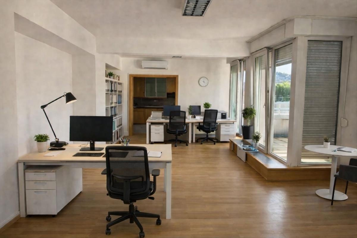 Az ingatlanban 7 iroda, nagy méretű konyha, 3 fürdőszoba került kialakításra. a D-NY-i oldalon két kisebb és egy nagyobb terasz kapcsolódik az irodákhoz, amelyről csodás panoráma nyílik.