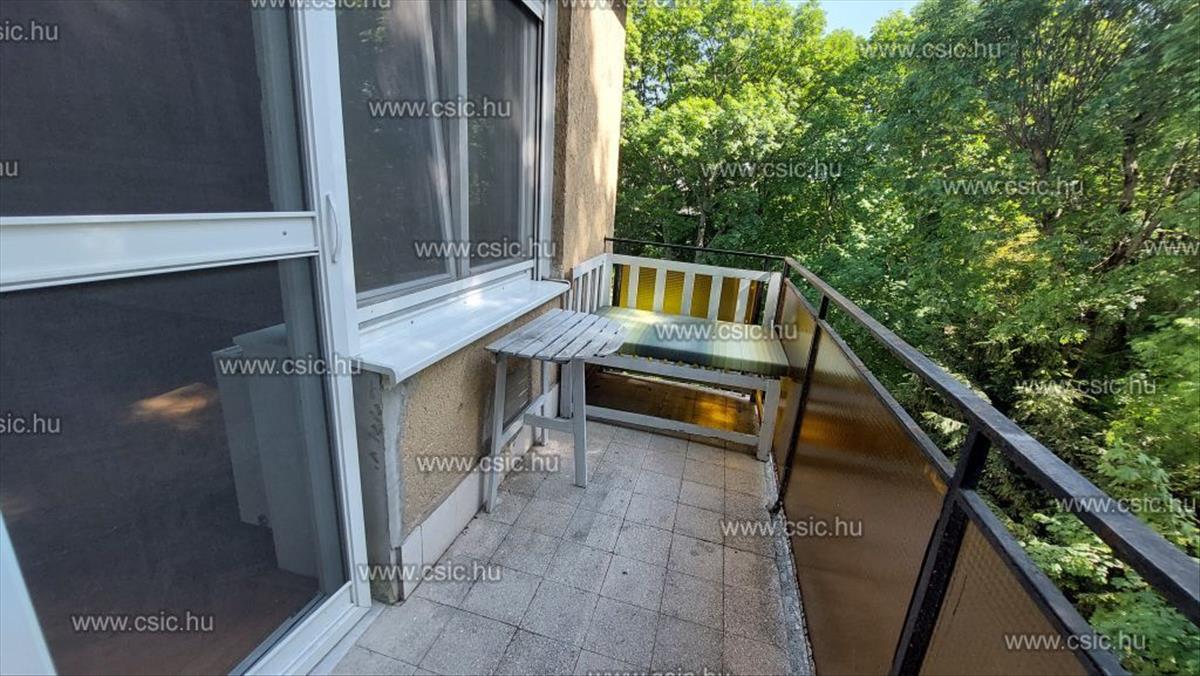 A zöldövezeti környezetben lévő társasház az 1970-es években épült, jó állapotú, folyamatosan karbantartott, rendezett. Az ingatlan egy háromemeletes, lift nélküli lakóépület legfelső szintjén található. a bútorozatlan, gépesített lakás hosszútávra bérelhető.