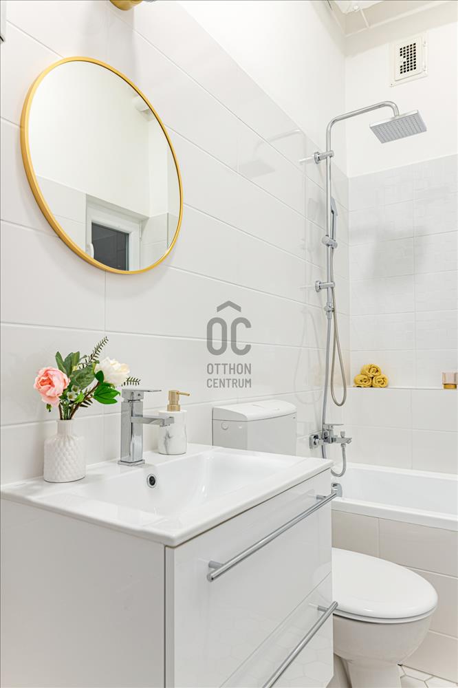 A 320 cm-es belmagasság igazi tágasságérzetet ad, amelyet a nagy ablakok fényjátéka még inkább kiemel. Az enteriőr egyszerre funkcionális és otthonos: a bútorozottság kényelmet biztosít, a téglaépület karaktere pedig igazi „újlipótvárosi életérzést” csempész a mindennapokba.