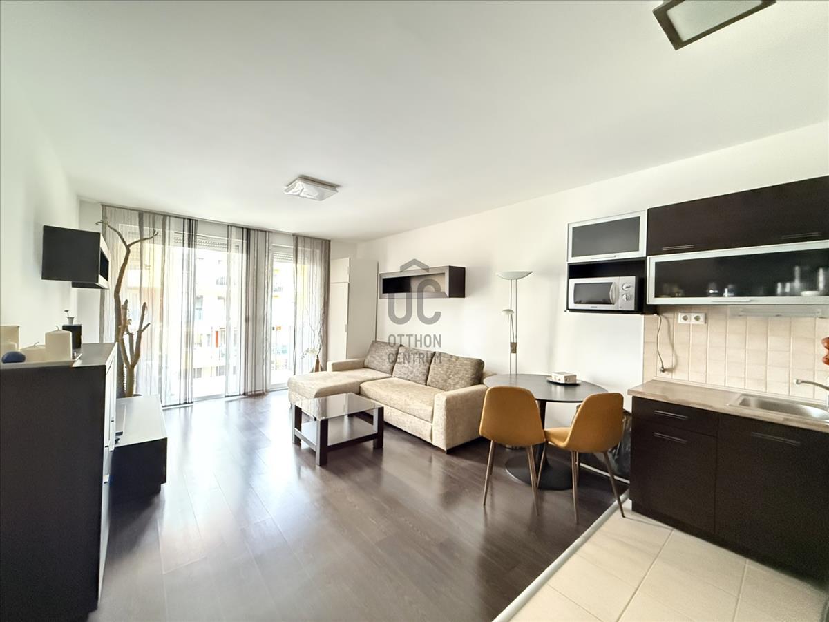 XIII. Vizafogón a Jakab József utcában, 2009-ben átadott minőségi lakópark, negyedik emeletén 46nm + 5nm erkélyes, keleti tájolású, gondozott belső kertre néző kétszobás otthon kiadó.