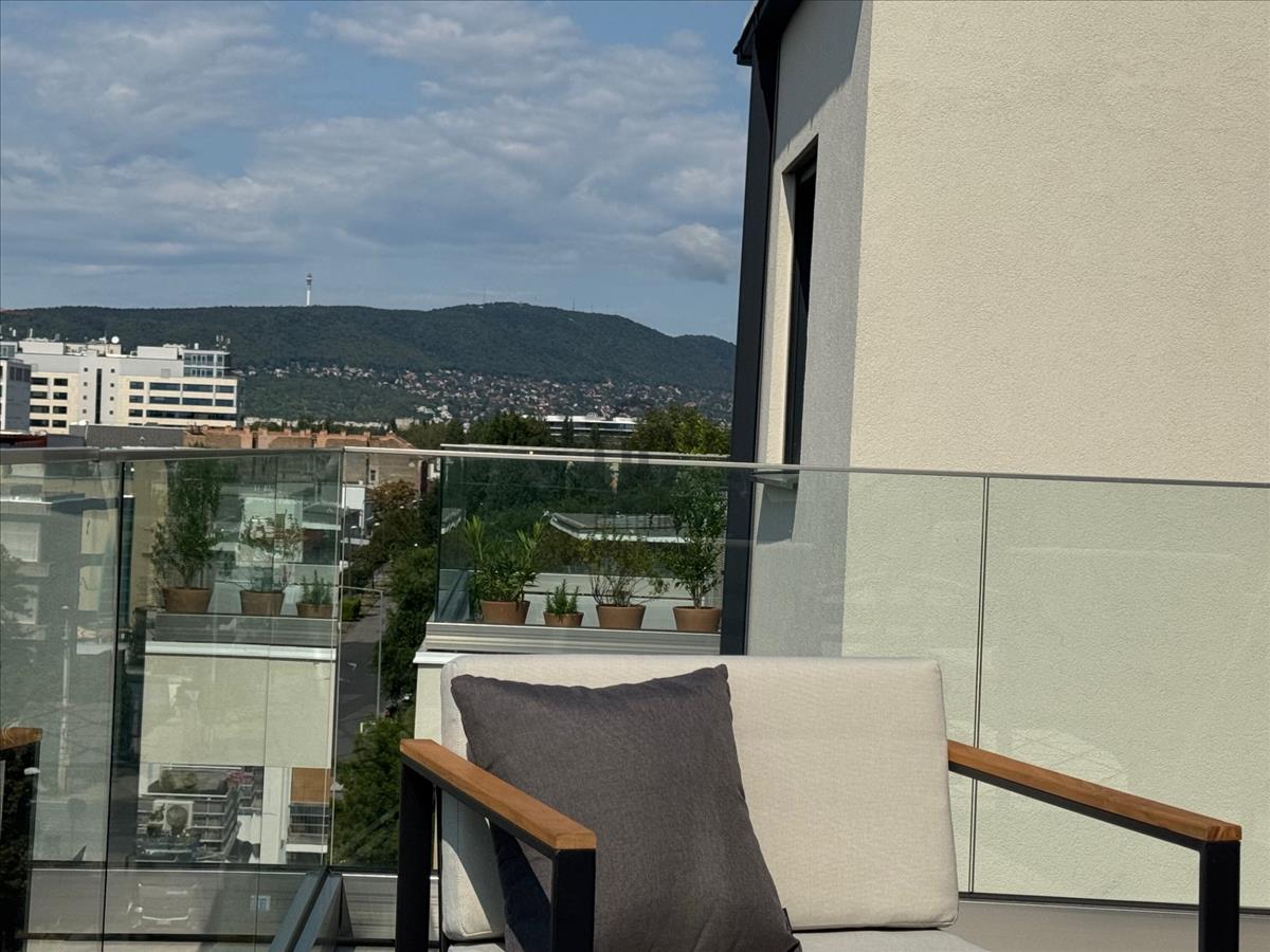 Az erkélyről panoráma nyílik a budai Hármashatár-hegyre. Egy kávé reggel vagy egy pohár bor este itt külön élmény!