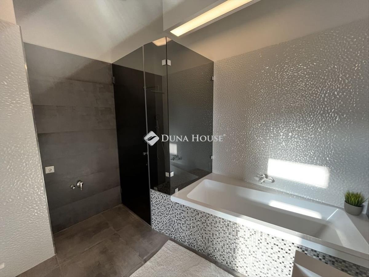 2 elegáns fürdőszoba (egyik kádas és zuhanyzós, másik zuhanyzós és WC-s) tágas előtér