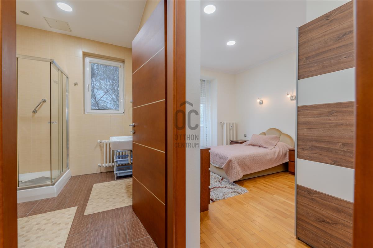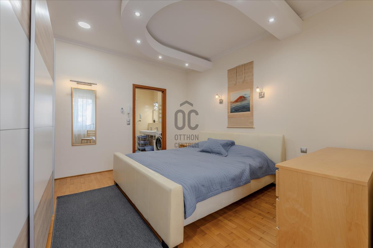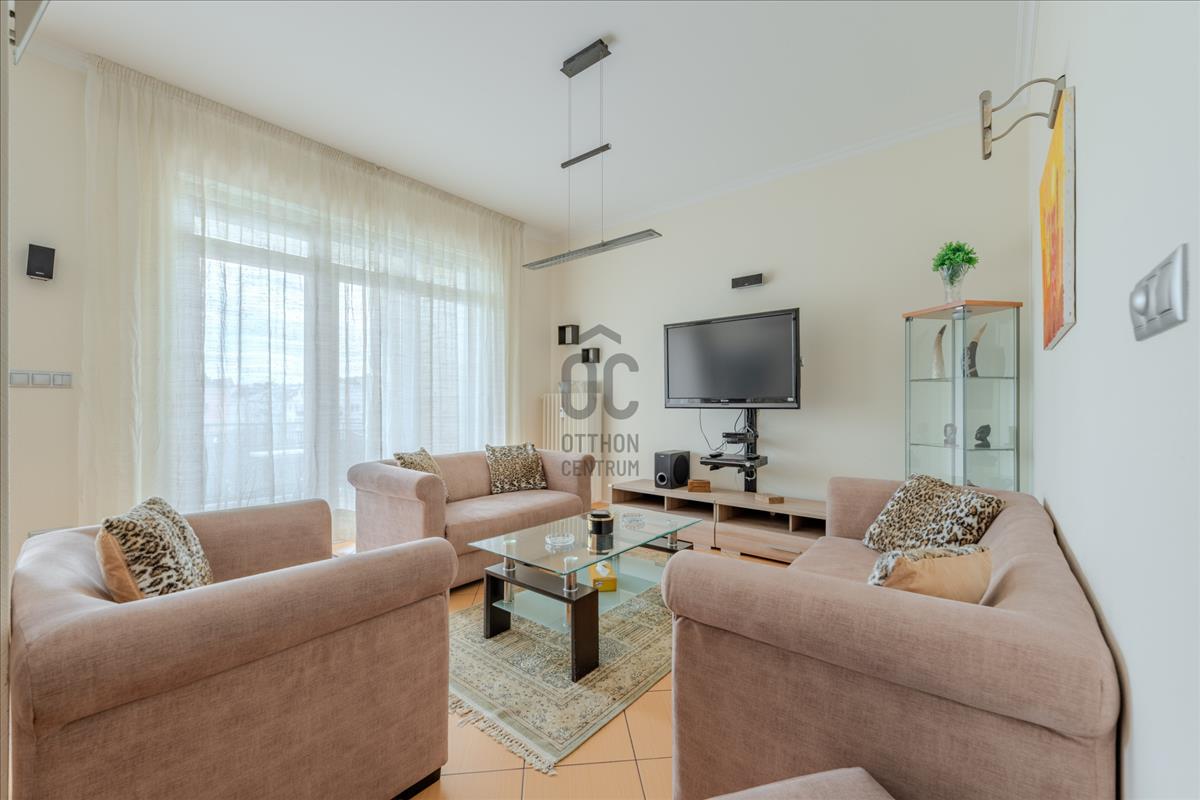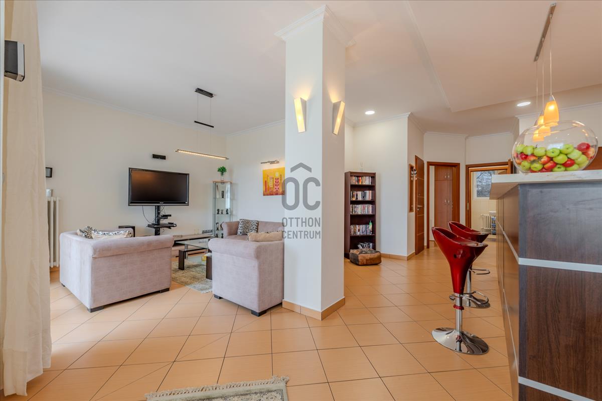 A lakás technikai felszereltsége (motoros redőnyök, beépített szekrények) a maximális kényelmet szolgálja, a biztonságról pedig kiépített riasztórendszer gondoskodik.