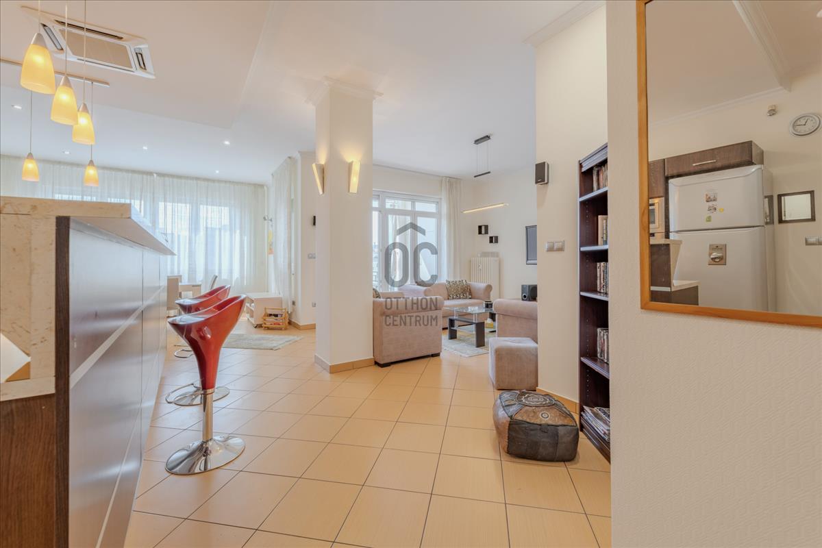 Kiadó egy 113 m²-es, prémium minőségben felújított, amerikai konyhás álomotthon, ahol a reggeli kávé mellé a Duna látványa jár.
