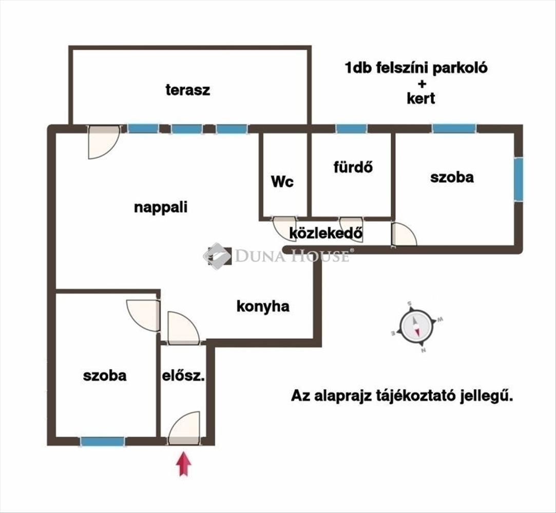 - nagy méretű terasz (kb. 10 M²) + közvetlen kertkapcsolat