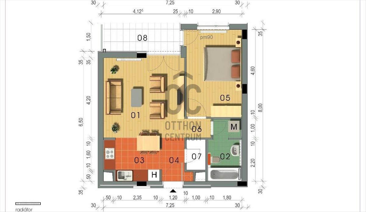A lakás praktikus elrendezésű, világos terekkel rendelkezik, valamint egy 6, 6 nm -es erkéllyel, amely csendes, nyugodt belső kertre néz. További előnye, hogy a lakáson belül külön tároló is helyet kapott, így a pakolás is könnyedén megoldható.