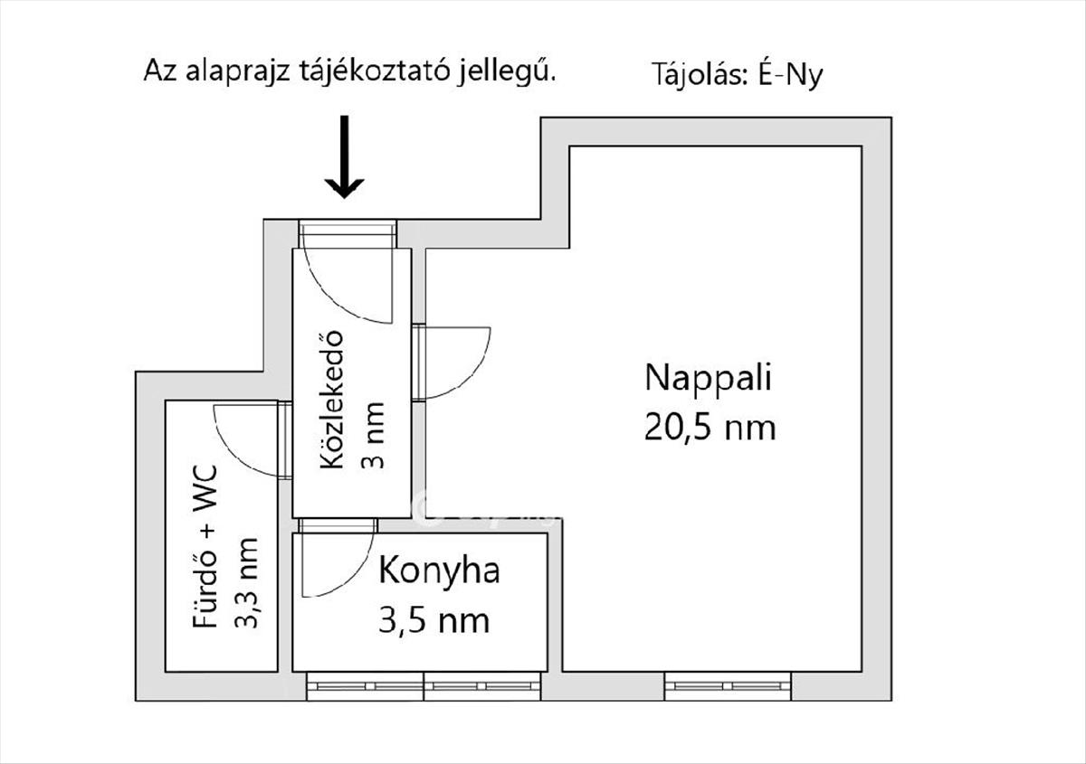 Az ingatlan a második emeleten helyezkedik el, elrendezése kifejezetten praktikus, különálló konyhával rendelkezik. Az utcára néző ablakoknak köszönhetően nemcsak a szoba, hanem a konyha is világos és kellemes hangulatú.