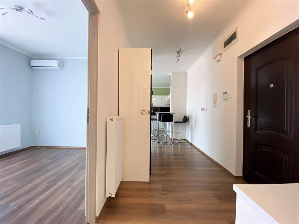 A lakásba lépve az előtérben, cipős szekrény kabát akasztó fal, a nappaliban tágas kanapé, étkező pult bárszékekkel, tévé.