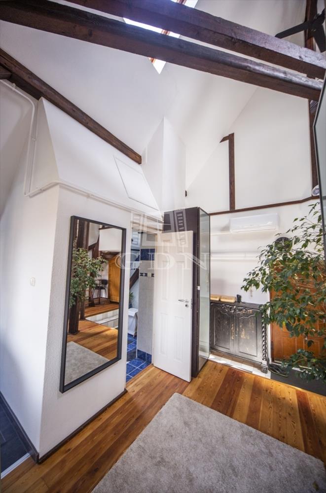 Az újonnan beépített klímával felszerelt lakás belső átriumos kialakítása, valamint a terek elrendezése egyértelműen a klasszikus művész lakás hangulatát árasztja.