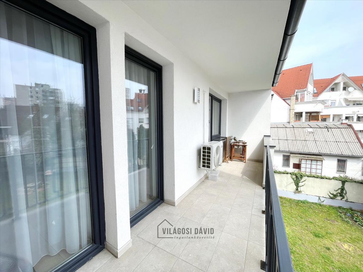 Debrecen Belvárosában, a Honvéd utcában, új építésű, hőszivattyús, szigetelt, liftes társasházban, kiadó egy 2. emeleti (liftes) 65 nm -es, nappali + 2 szobás, igényesen berendezett, bútorozott és gépesített, klimatizált, nagy teraszos lakás. a kellemes hőmérsékletről padlófűtés és dupla klíma gondoskodik.