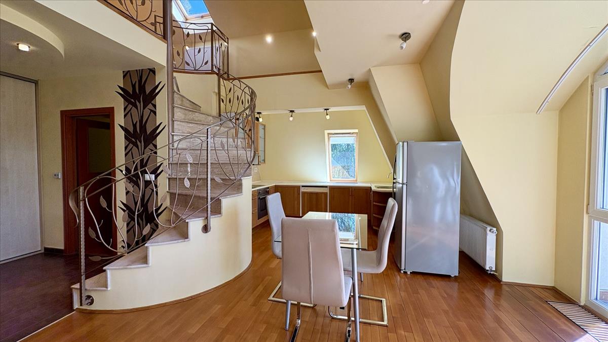 In the Debrecen-Nagyerdő district, close to tram 1 and the main building of the University, a 110 m² interior two-storey apartment for rent.