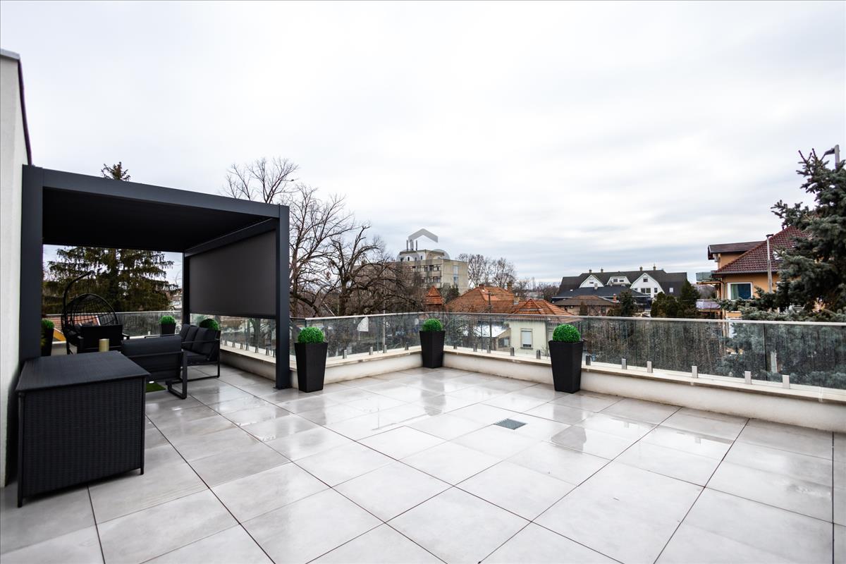 A lakás prémium minőségű anyagokkal, igényes belsőépítészeti megoldásokkal került kialakításra. Klimatizált, korszerű gépészettel felszerelt, energiahatékony, így alacsony rezsiköltséggel fenntartható. a modern konyha beépített gépekkel ellátott, a burkolatok és szaniterek magas minőséget képviselnek. Teljes bútorzattal kiadó a lakásban padlófűtés, mennyezet hűtés-fűtés található. a teraszon pergola, az ablakokon elektromos redőnyök, és elektromos zip függöny van felszerelve. a lakáshoz tartozik egy önálló, zárt garázs, a társasház udvarán.