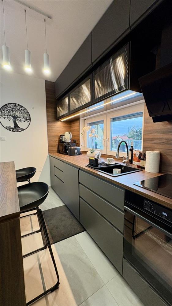 Konyhában minden háztartási gép gorenje márkájú: mosogatógép, sütő, páraelszívó. Továbbá kis gépek és amerikai side by side hűtő is található.
