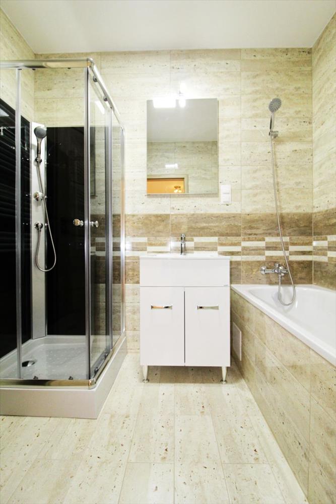 A fürdőszoba zuhanyzóval és káddal is felszerelt.