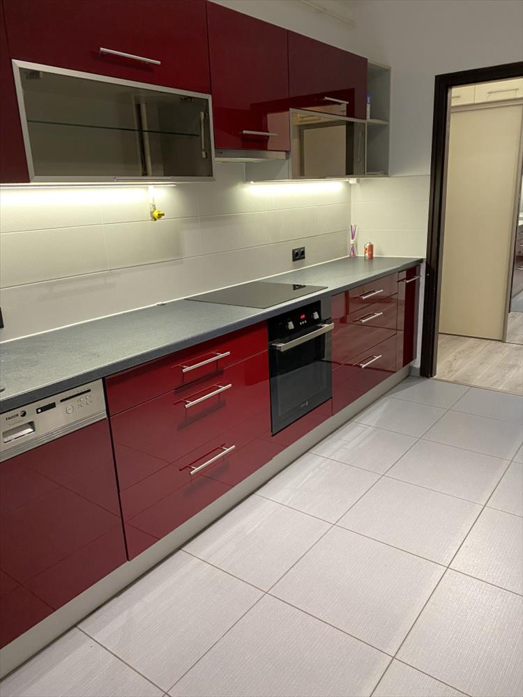 A lakás részben bútorozott (nappaliban ágyazható kanapé, egyik szobában franciaágy), gépesített (indukciós főzőlap, elektromos sütő, mosogatógép és mosógép).