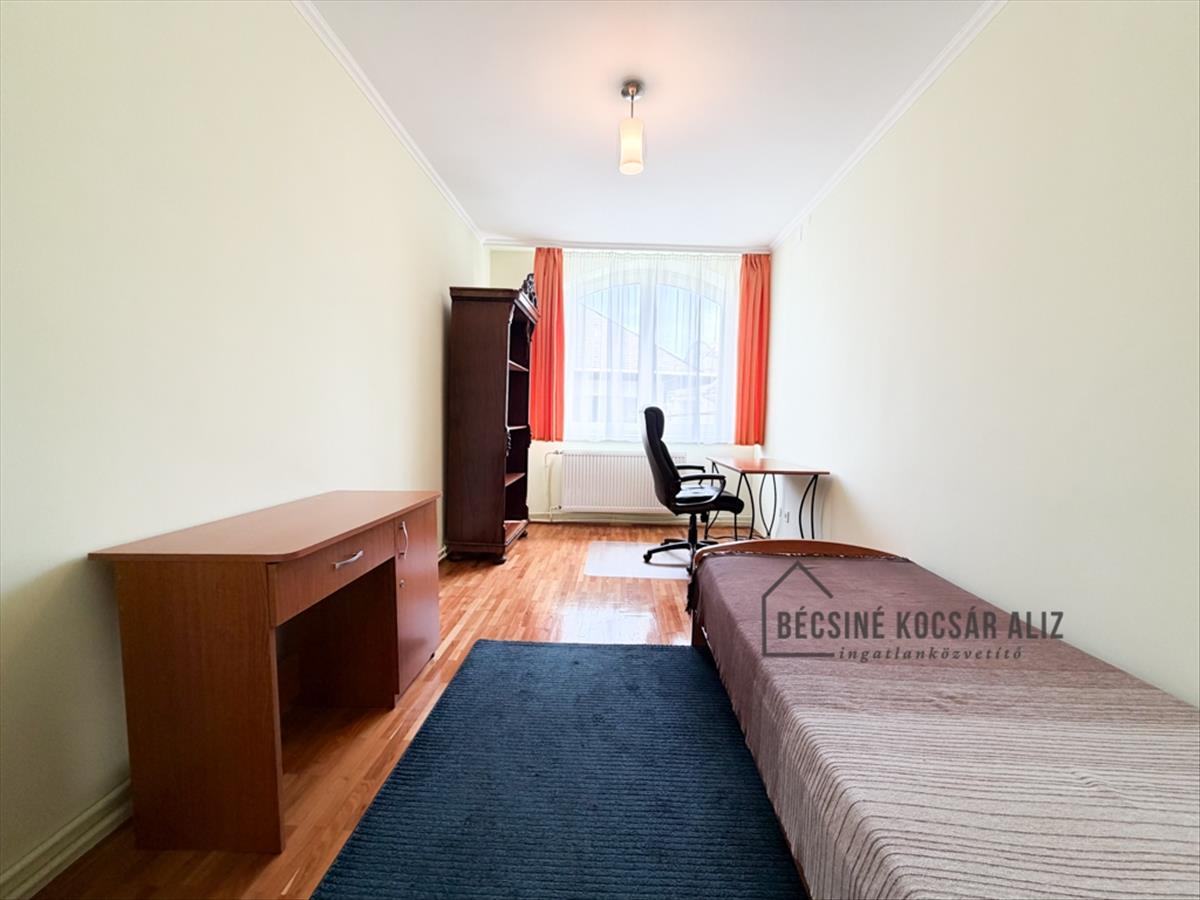 Debrecen óvárosának egyik csendes, egyirányú utcájában kiadó egy tágas, világos és napfényes, 120 m²-es téglalakás, zárt udvaros társasházban.