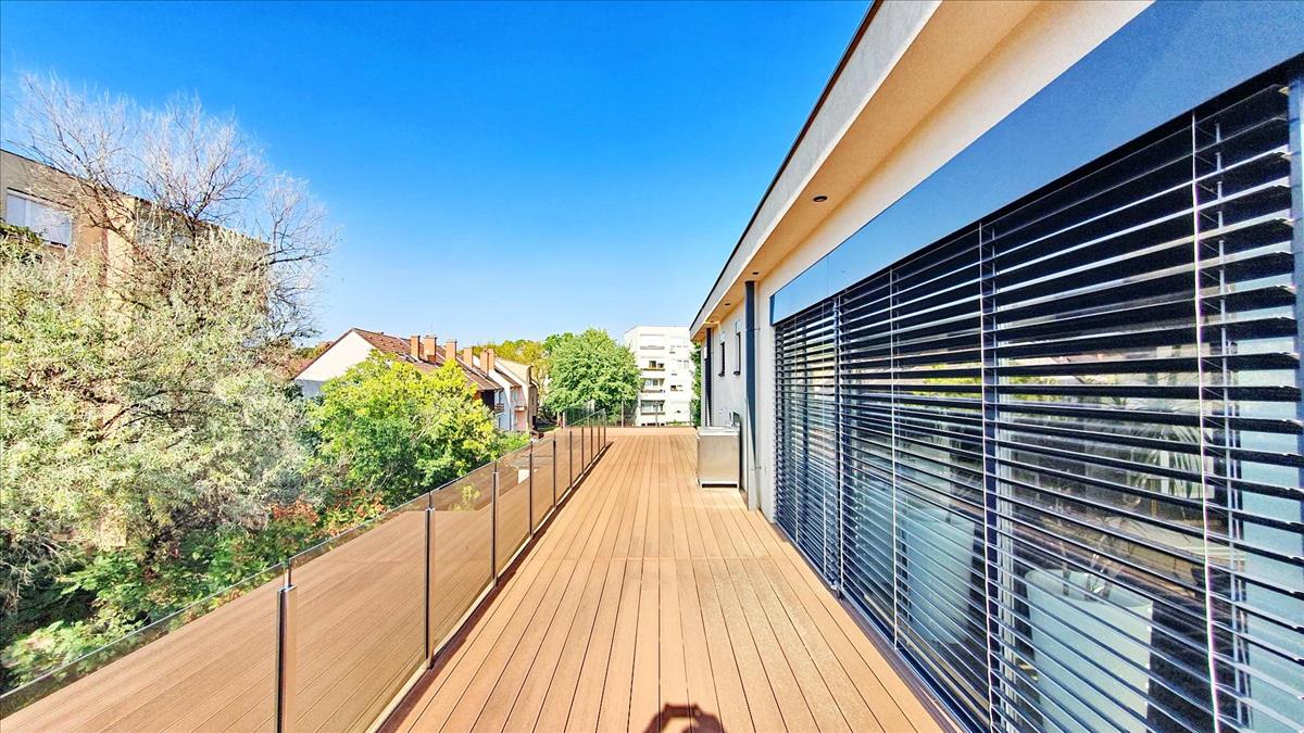 Debrecen - Nagyerdőn kiadó egy exkluzív 92 négyzetméteres 3 szobás penthouse, 200 négyzetméteres tetőterasszal, hatalmas üvegfelületekkel, napfényes, körbe világos lakás, lakberendező által megtervezett, magas minőségű olasz bútorokkal és gépesítéssel, csendes részen, dupla garázzsal (32 nm). Az ingatlan hosszú távra kiadó, március 1-el költözhető és 3 havi kaució szükséges! Referenciaszám: #36059