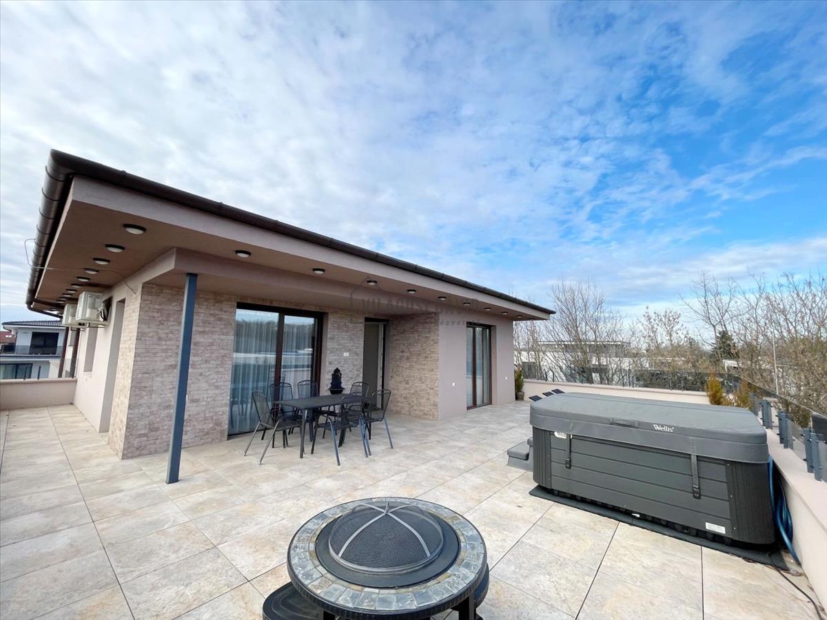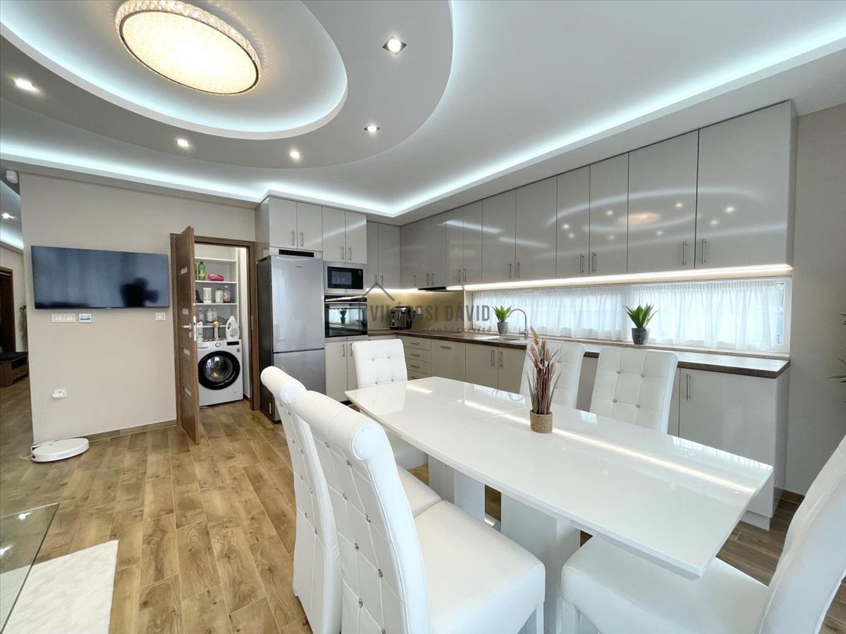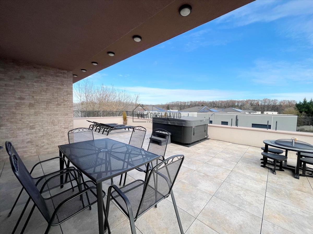 Debrecen–Nyulas városrészben, a Hangyás közben kiadó egy 100 m²-es, nappali + 3 hálószobás, dupla fürdőszobás, teljesen gépesített és bútorozott, penthouse jellegű luxuslakás.A lakás különlegessége a 112 m²-es terasz, amely jakuzzival és grillel felszerelt.