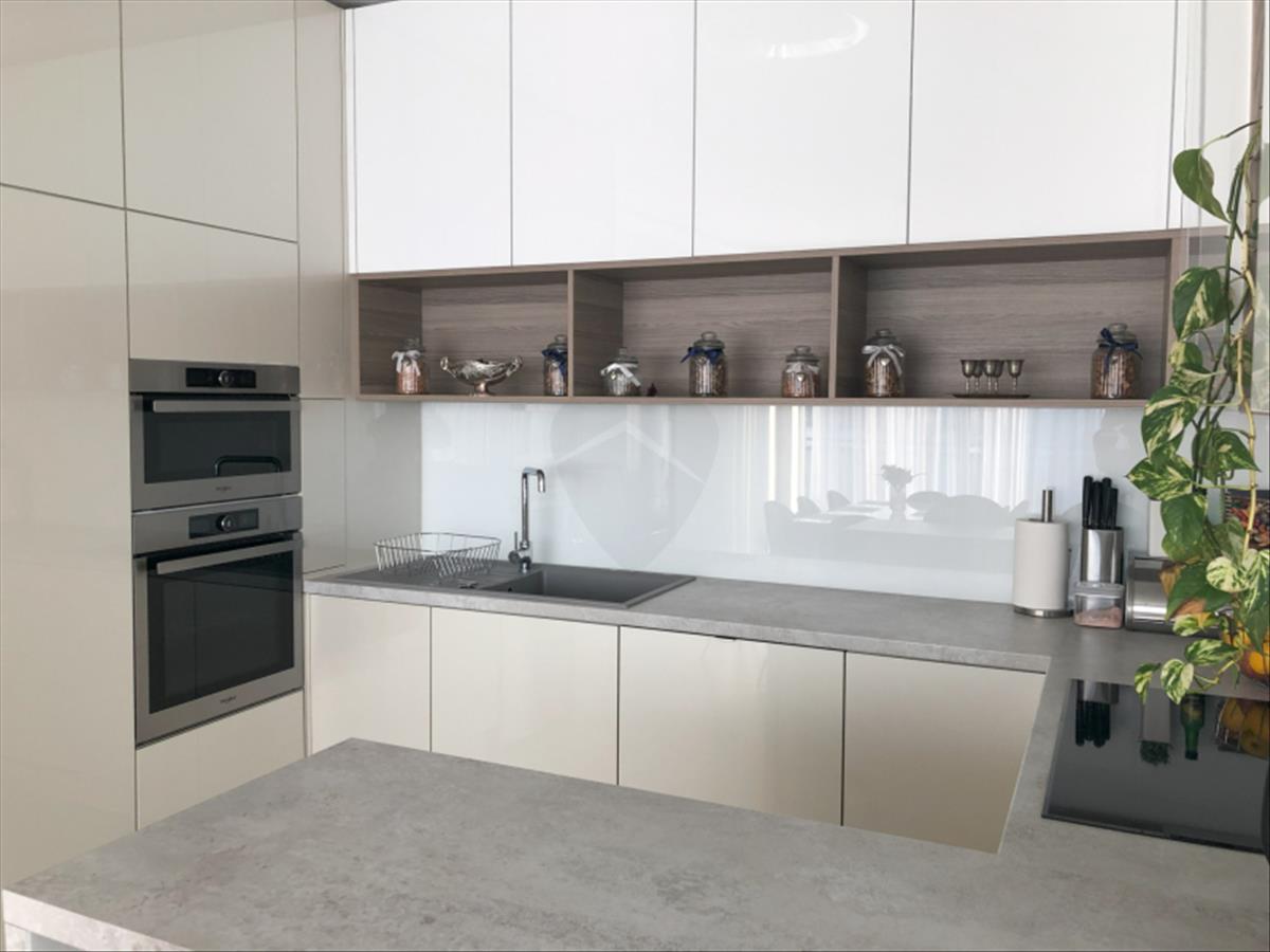 Látványos, világos és tágas központi tér, ahol a modern konyha egybeolvad a nappalival