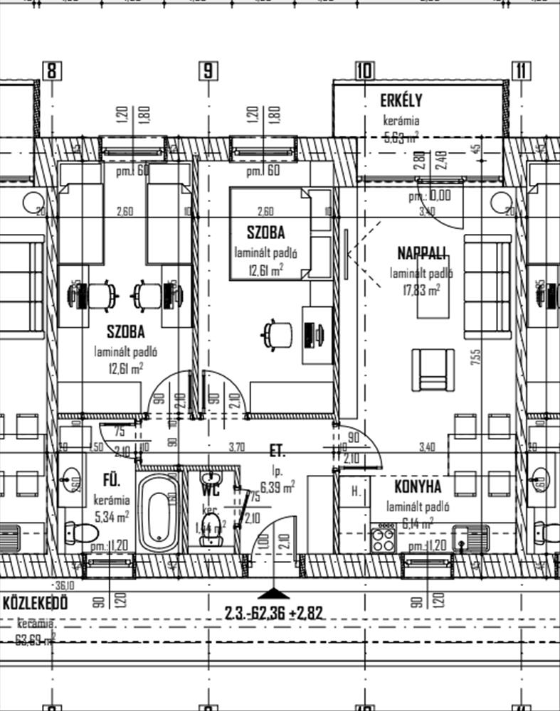 - Alapterülete 63, 3 m2, hozzá 2, 59 m2 -es erkély