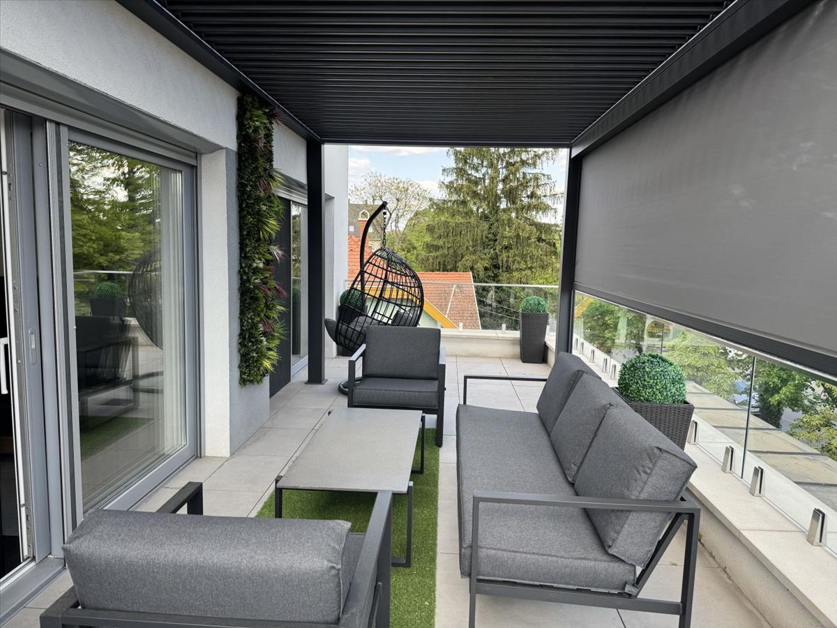 For rent in Debrecen, on Széchenyi Street, a newly built, premium-quality 70 m² penthouse apartment with a 90 m² rooftop terrace. The property was designed and furnished by an interior designer, featuring modern technical solutions and high-end finishes.