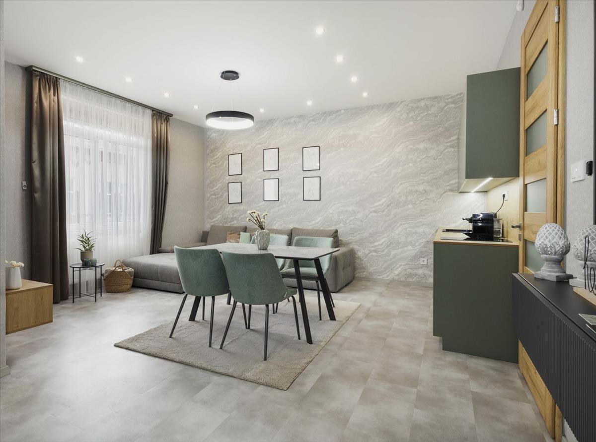 In the heart of Debrecen, on Bajcsy-Zsilinszky Street, a luxurious 66 m², fully furnished, high-quality equipped, and air-conditioned apartment is available for rent on the ground floor.