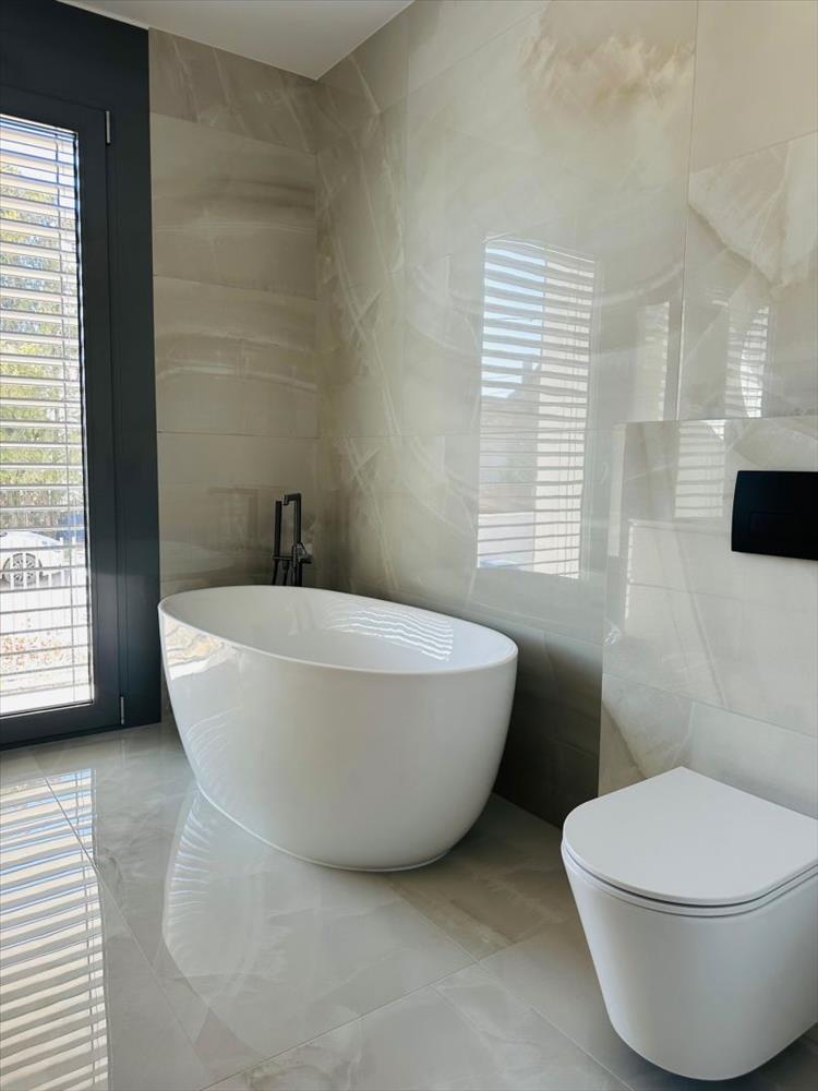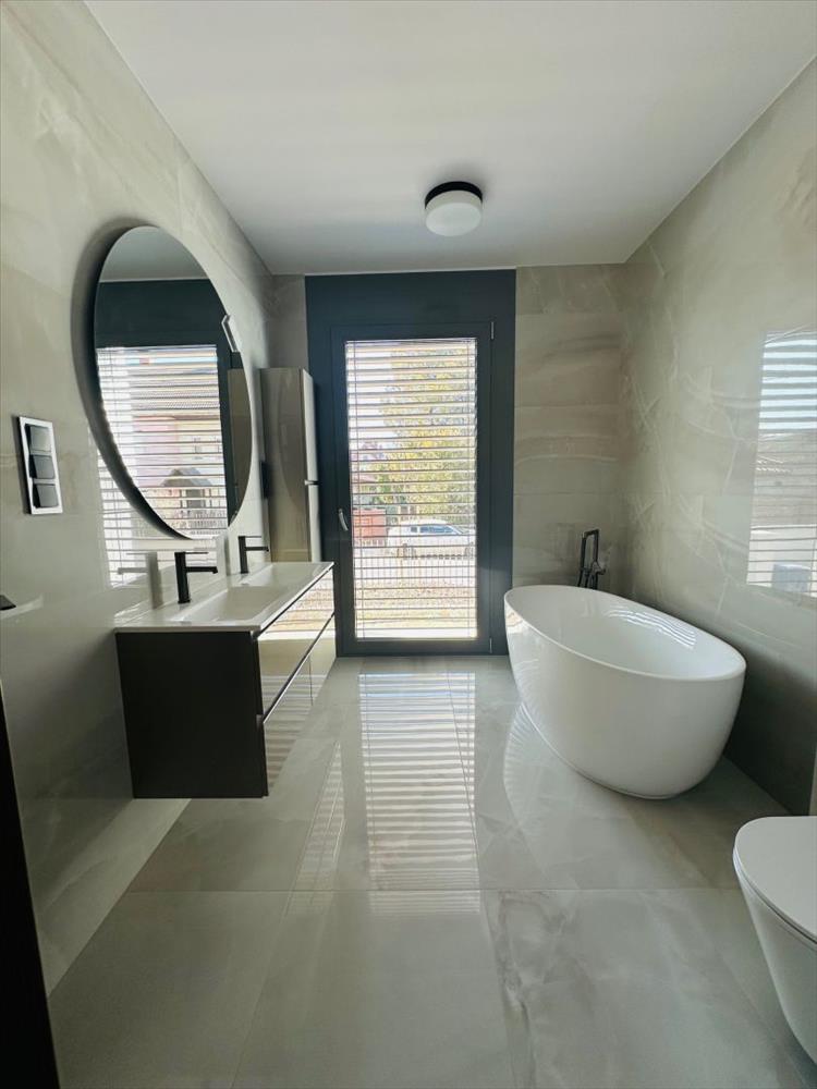 - fürdőszoba duplamosdóval, wc-vel és térben álló káddal