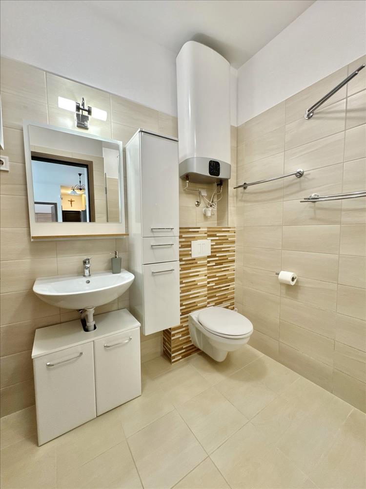 -MELEGVÍZ ellátást: a fürdőszobában elhelyezett 100 literes modern lapos bojler biztosítja.