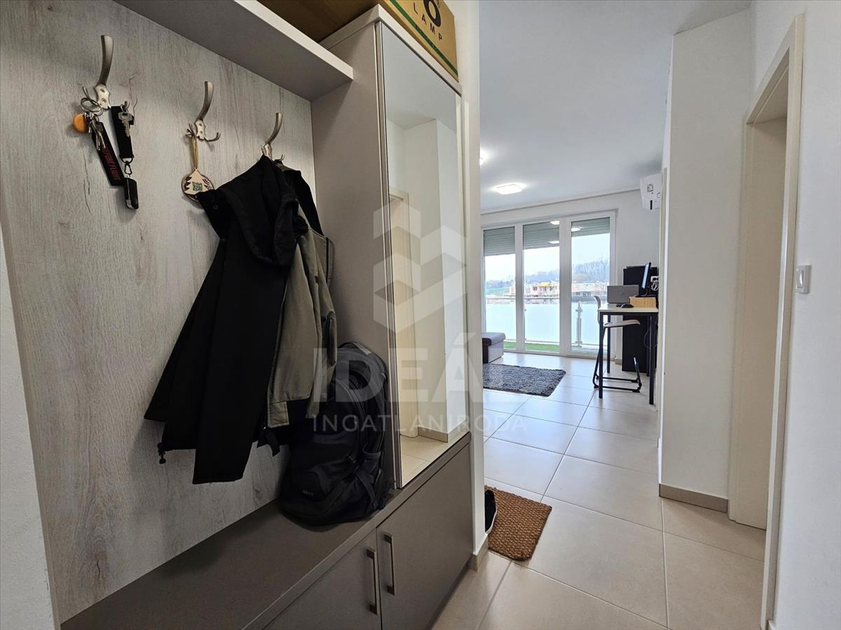 Győr, Víziváros, Vidra utcában, újszerű 45m2-es, amerikai konyhás + 1 szobás, 2 emeleti téglalakás, erkéllyel, mélygarázs beállóval, hosszú távra, albérletbe kiadó.