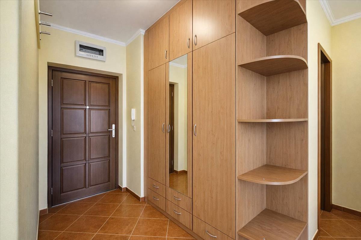Helyiségei: amerikai konyhás nappali, hálószoba, zuhanyzós fürdő, wc bidével, kézmosóval, előszoba nagy beépített szekrénnyel.